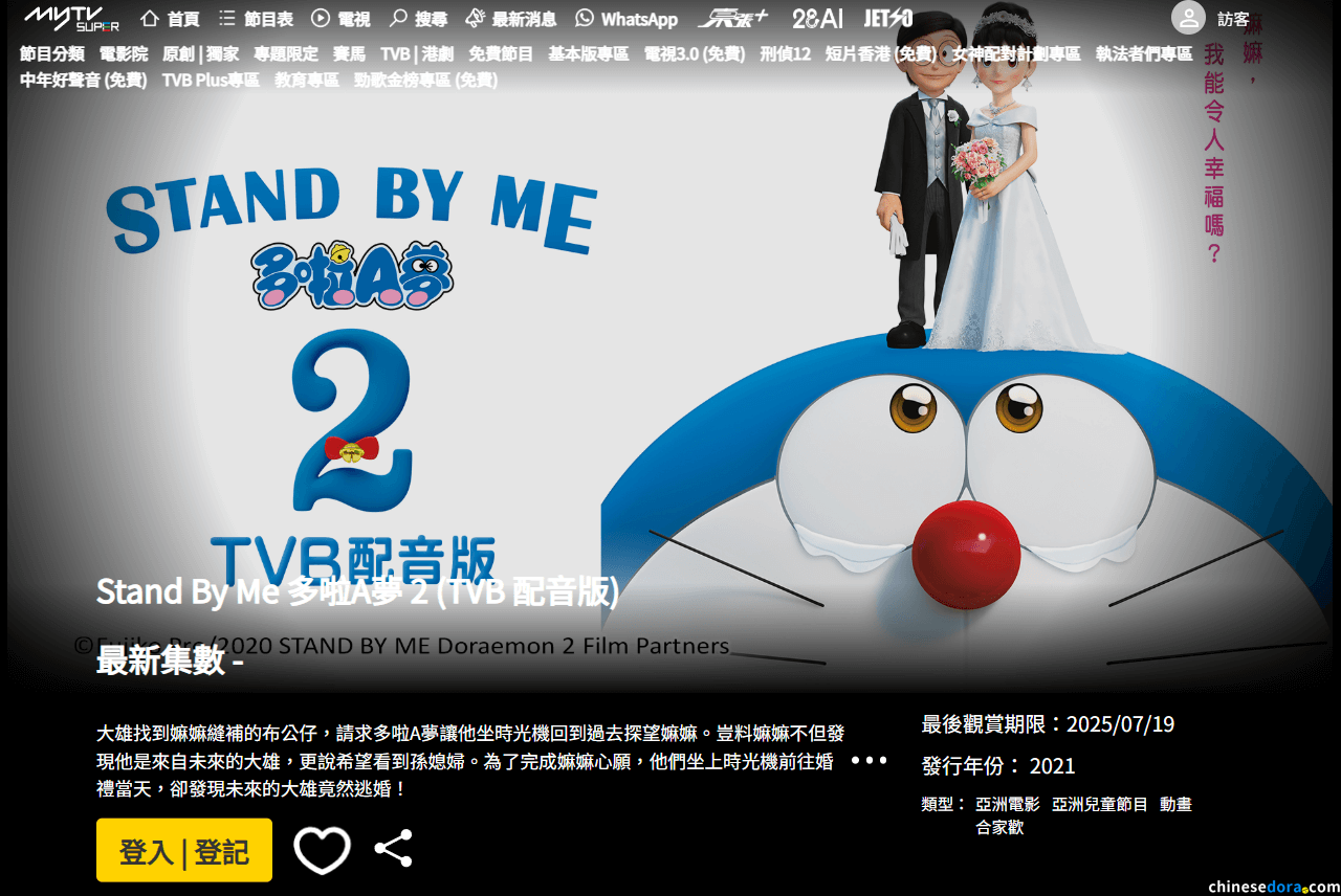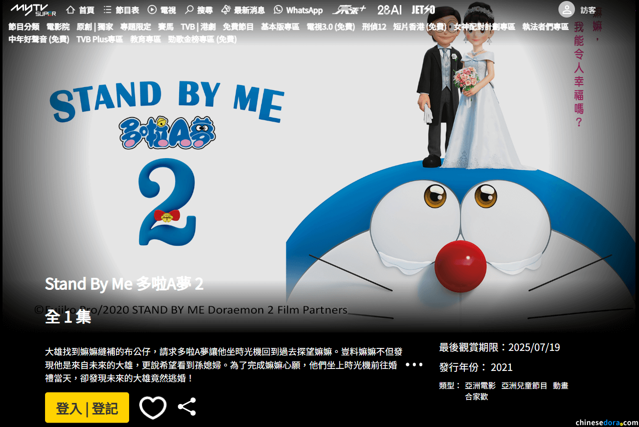 TVB《Stand By Me 2》(2020)《Stand By Me 多啦A夢 2》TVB配音版《STAND BY ME 多啦A夢 2》洲立公映版《地球交響樂》(2024)myTV SUPER《大雄之地球交響樂》@香港電影線上看(串流點播)