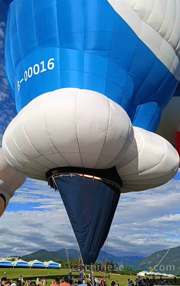 近看這一顆哆啦A夢熱氣球,身體的藍色與台東背後的天空相呼應,又不會被背景的天空藍吃掉,並且不論是紅色頸圈、黃色的鈴鐺、嘴巴的顏色,都符合哆啦A夢的動畫形象,只有到鹿野高台現場才能感受到這樣的壯觀。