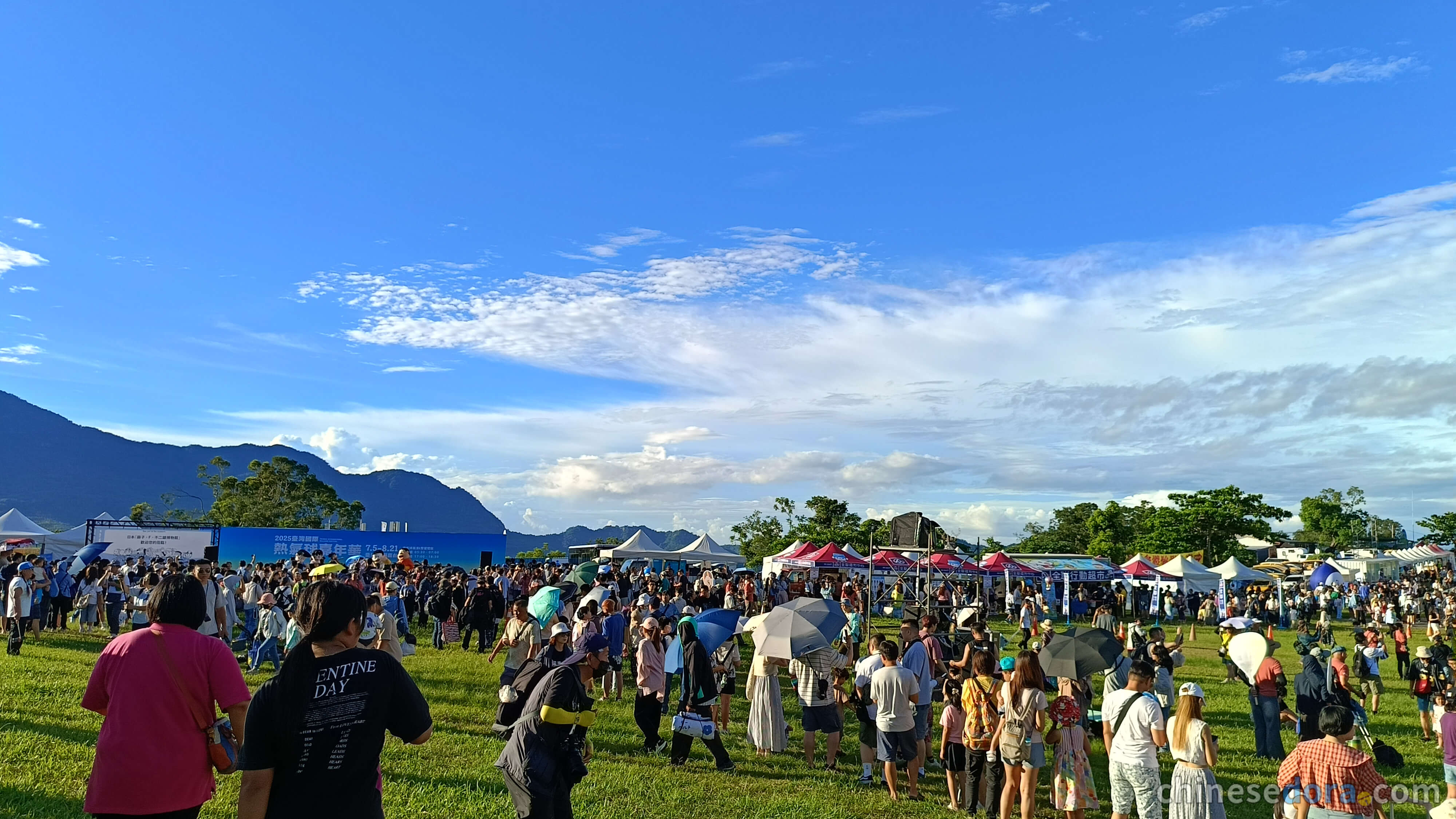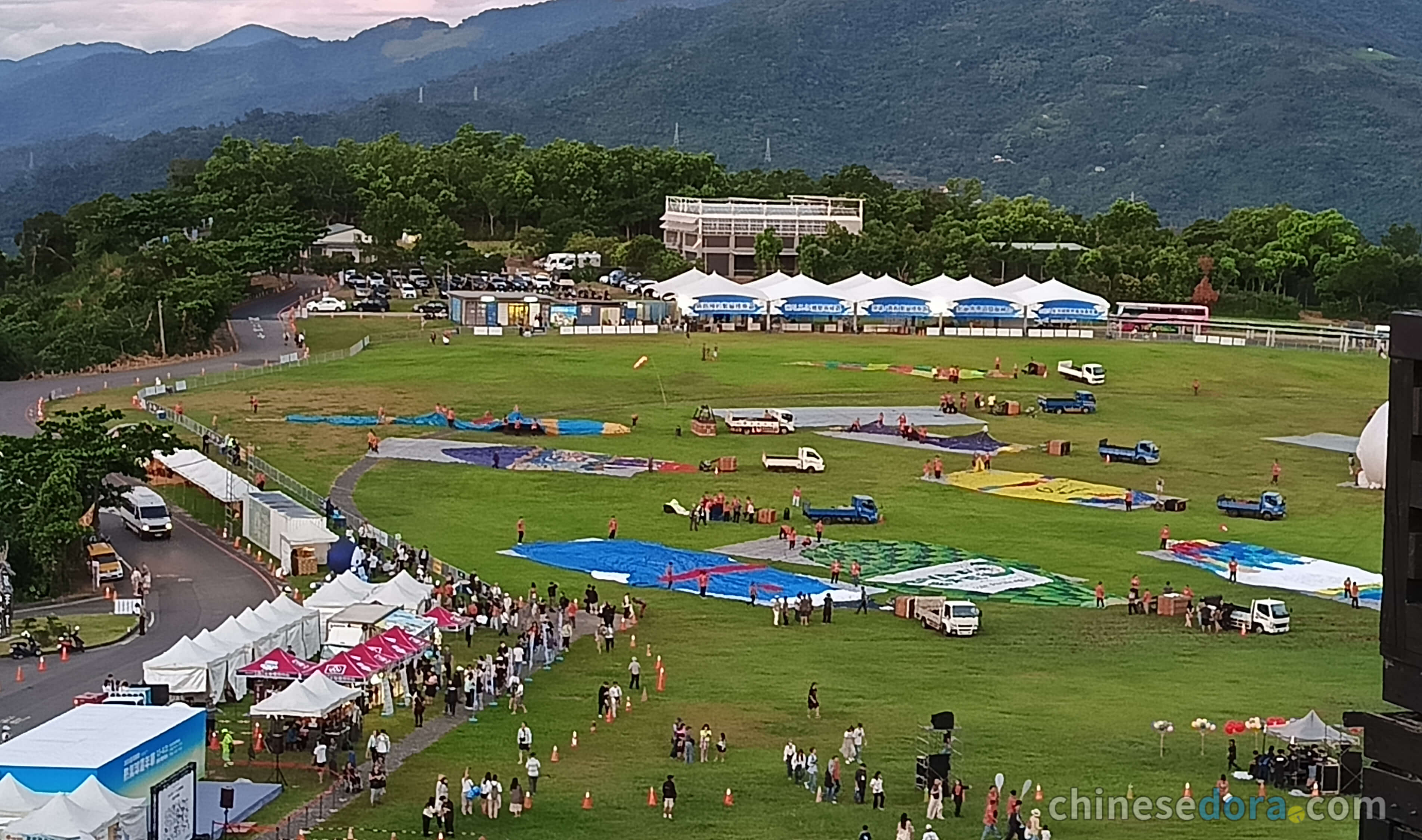 從機車停車場走上鹿野高台觀景大草皮,地勤人員已攤平好全部熱氣球的球皮,現場可說是人山人海,鹿野高台高眺亭前排已有攝影提前卡位,上面也擠滿了想看熱氣球的民眾,想看熱氣球的心情不會被瞌睡蟲打敗!