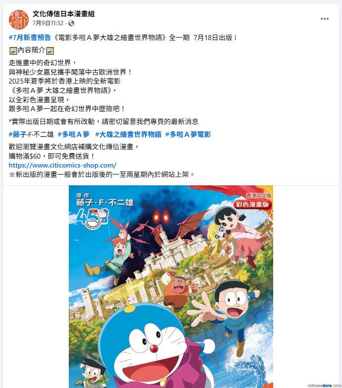 更多關於文化傳信推出的《多啦A夢》「香港中文版」漫畫書的販售通路等相關詳情,可參閱下列資訊。