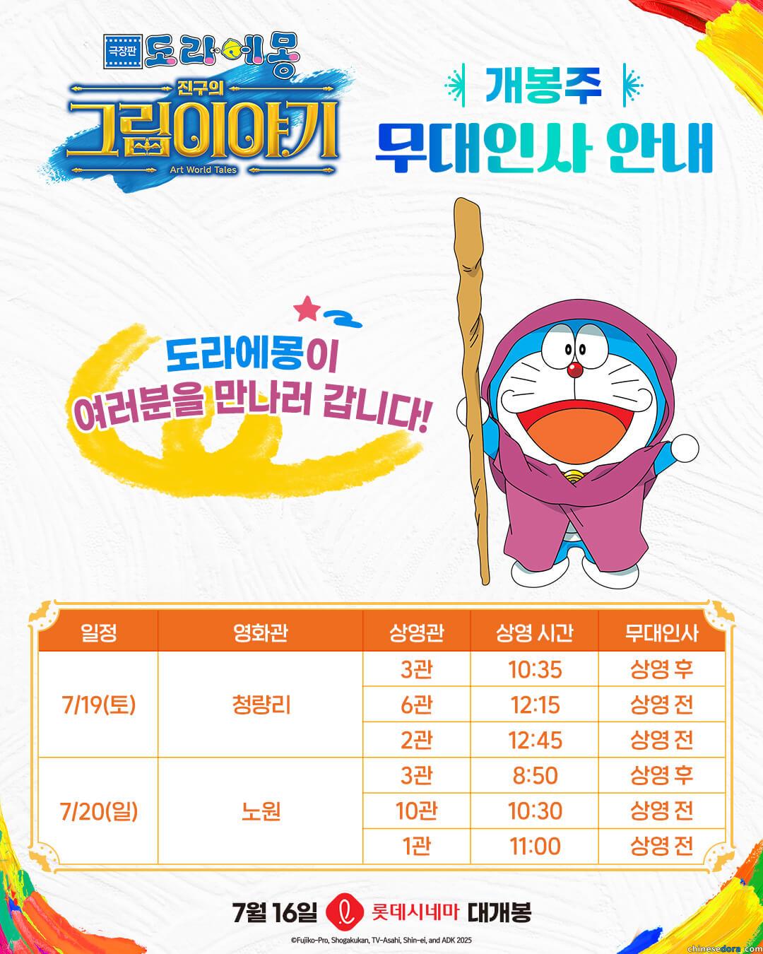 《大雄的繪畫世界物語》即將於南韓盛大上映,當地樂天戲院特別安排了多場哆啦A夢(港譯:多啦A夢)見面會,人偶會在電影放映前後與觀眾見面!