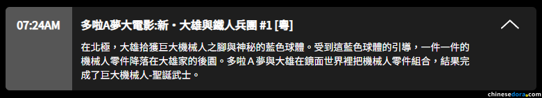 ※以上節目時段來自 myTV SUPER 網頁版的節目表。節目「開播時間」的部分以《多啦A夢》節目的開始時間作標記,「結束時間」的部分列出下一節目的開始時間以作參考。
