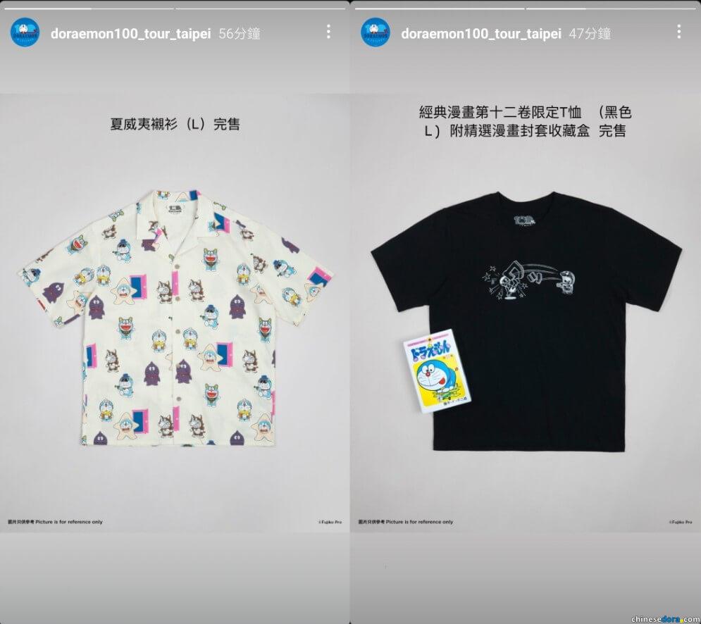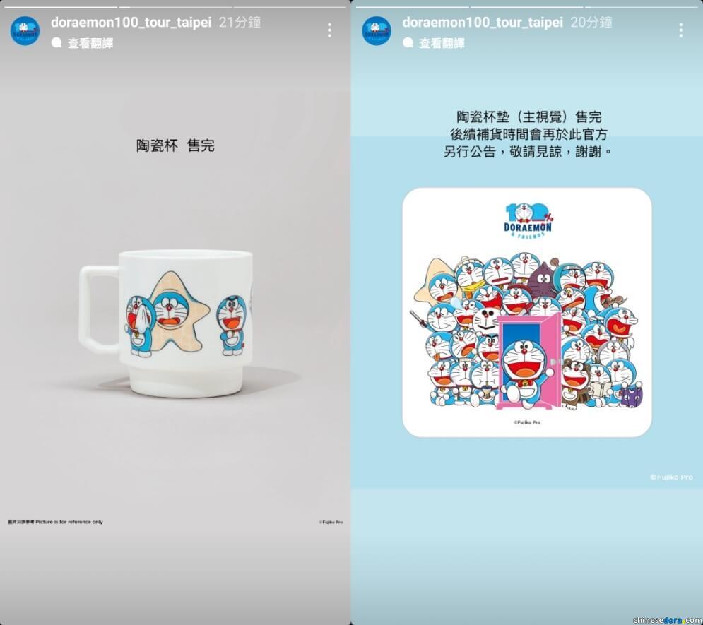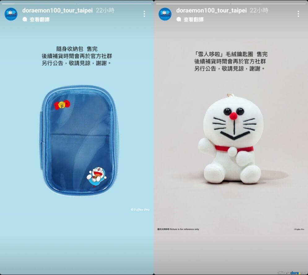 7 月 15 日售罄:夏威夷襯衫(L)、經典漫畫第十二卷限定T恤(黑色L)附精選漫畫封套收藏盒〔均為上海首賣款〕 7 月 18 日售罄:吸血鬼鑰匙圈〔上海首賣款〕【待補貨】 7 月 21 日售罄:隨身收納包〔台灣限定款〕【待補貨】、雪人哆啦鑰匙圈〔上海首賣款〕【待補貨】 7 月 22 日售罄:陶瓷杯〔上海首賣款〕【待補貨】、陶瓷杯墊(主視覺)〔台灣限定款〕【待補貨】