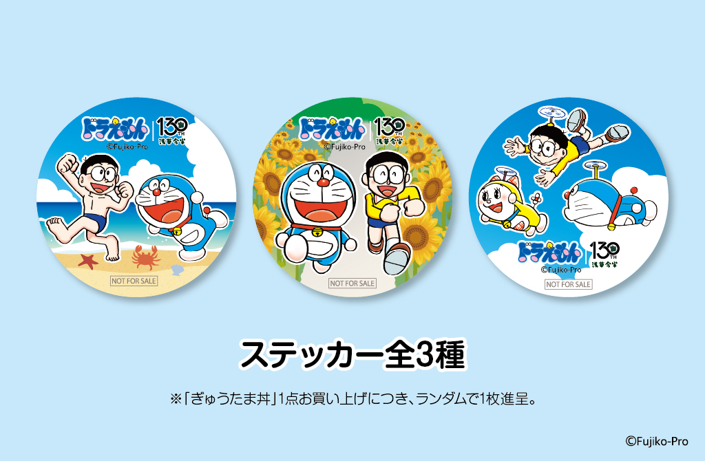只要在活動期間購買印有哆啦A夢(港譯:多啦A夢)外包裝的「牛丼」便當,每盒即可隨機獲得一款限量哆啦A夢原創貼紙(共3款)。在日本的哆啦粉絲,夏日不妨來一份淺草的傳統美味,留下美好的暑假回憶吧!