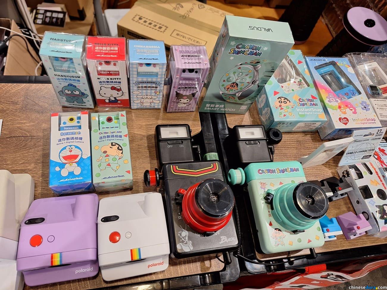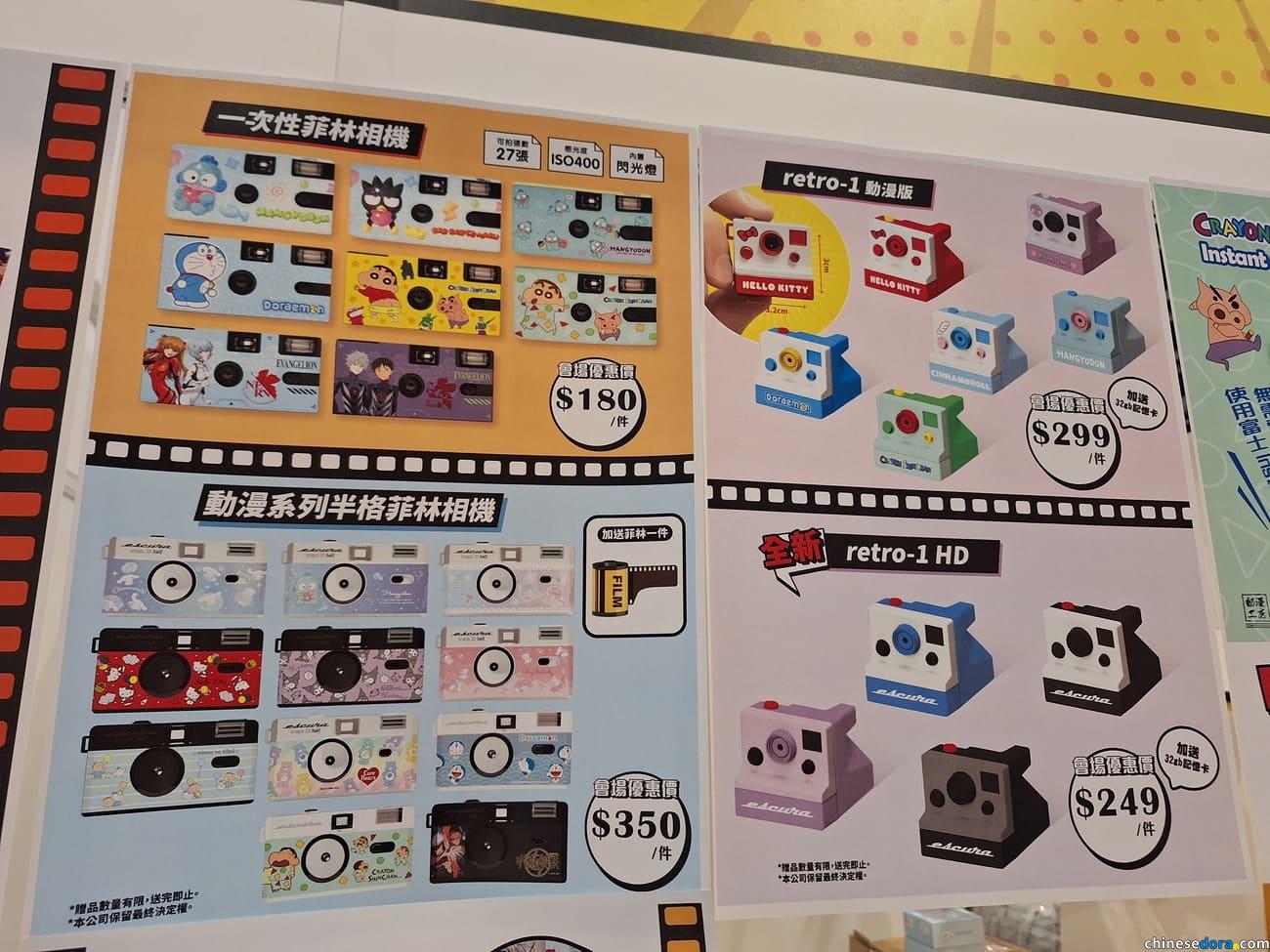 攝影器材方面,包括有最近新出的「多啦A夢 迷你數碼相機」及菲林相機等。除了多啦A夢主題,也有蠟筆小新、Sanrio 系列角色、Care Bears 等設計。