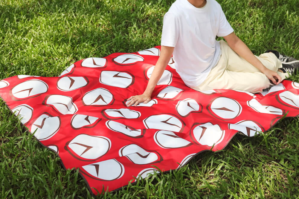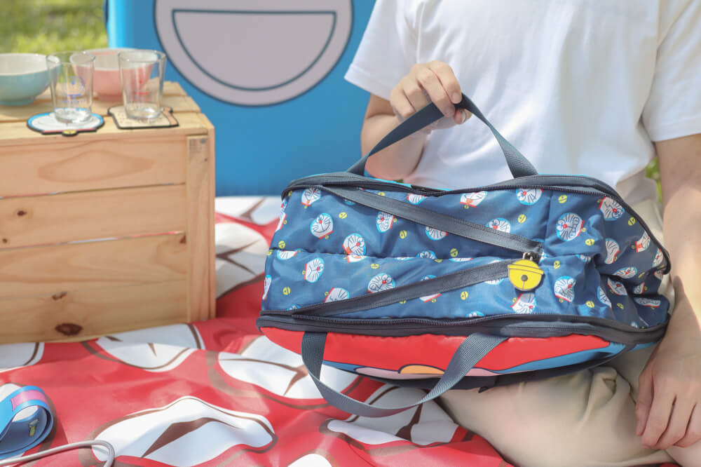 這款野餐墊融合人氣經典道具「時光巾」(時光布)的圖案,140×180公分的大尺寸,好朋友可一起坐在上面野餐、看熱氣球,可捲收收納,外出輕便,展開就是哆啦A夢的懷舊時光。