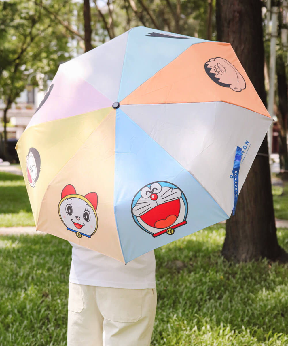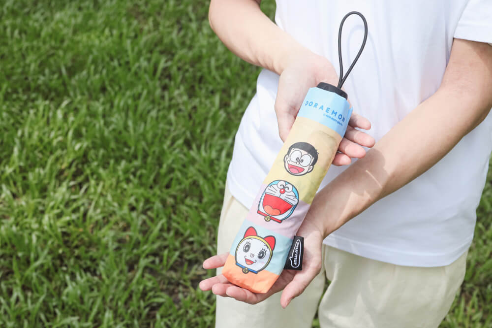 這款折疊傘上面有哆啦A夢六位好夥伴,搭配撞色設計,下雨時的注目焦點,收納袋上也有角色圖案唷!