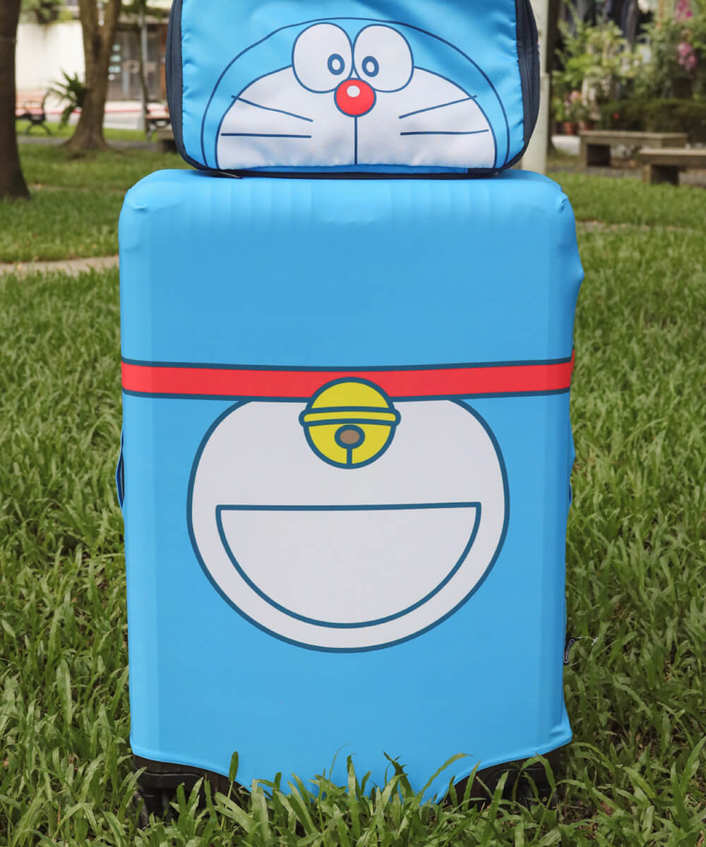 行李箱套是哆啦A夢的可愛肚皮圖案,辨識度高,套上去就不怕認不出自己的行李了!旅途中有哆啦A夢的陪伴。
