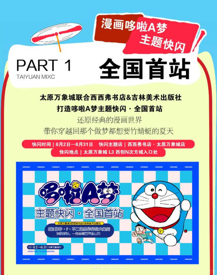 中國大陸吉林美術出版社攜手西西弗書店,打造「漫畫哆啦A夢主題快閃店」,首站將於 8 月 2 日在中國山西太原萬象城重磅登場!
