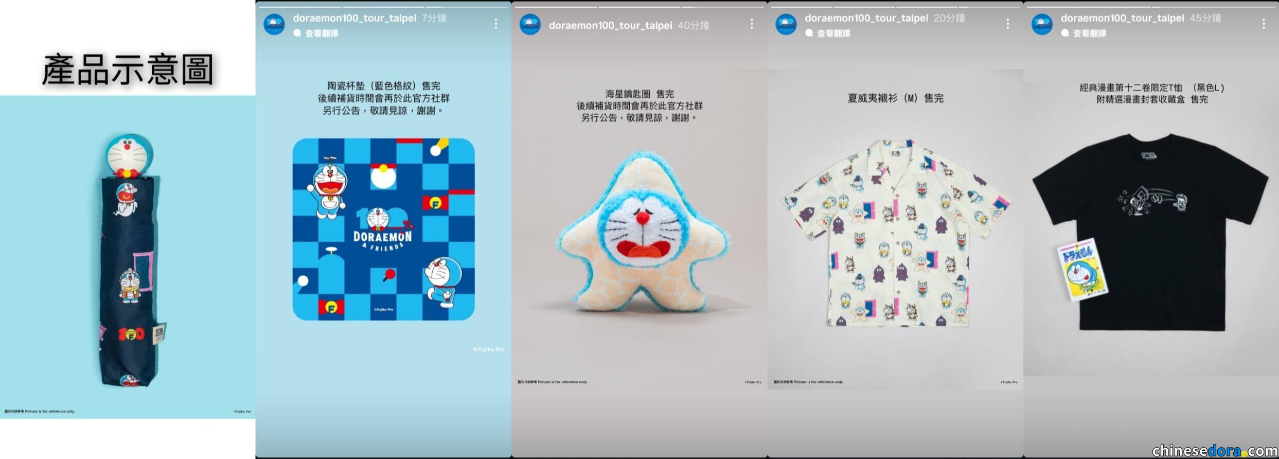 根據「100%哆啦A夢&FRIENDS」巡迴特展台北站消息,7 月 23 日至 8 月 1 日期間,9 款紀念品售罄與待補貨,另外有三款新產品已安排上架!