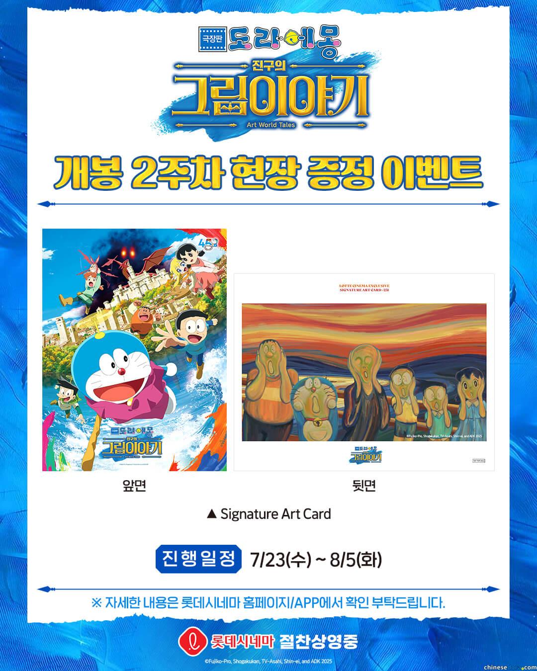 「上映第二彈禮品」(7/23~8/5,上映第二至三週)有藝術卡片(Signature Art Card),正面有南韓版海報,背面為哆啦A夢主角融入名畫《吶喊》的畫面。