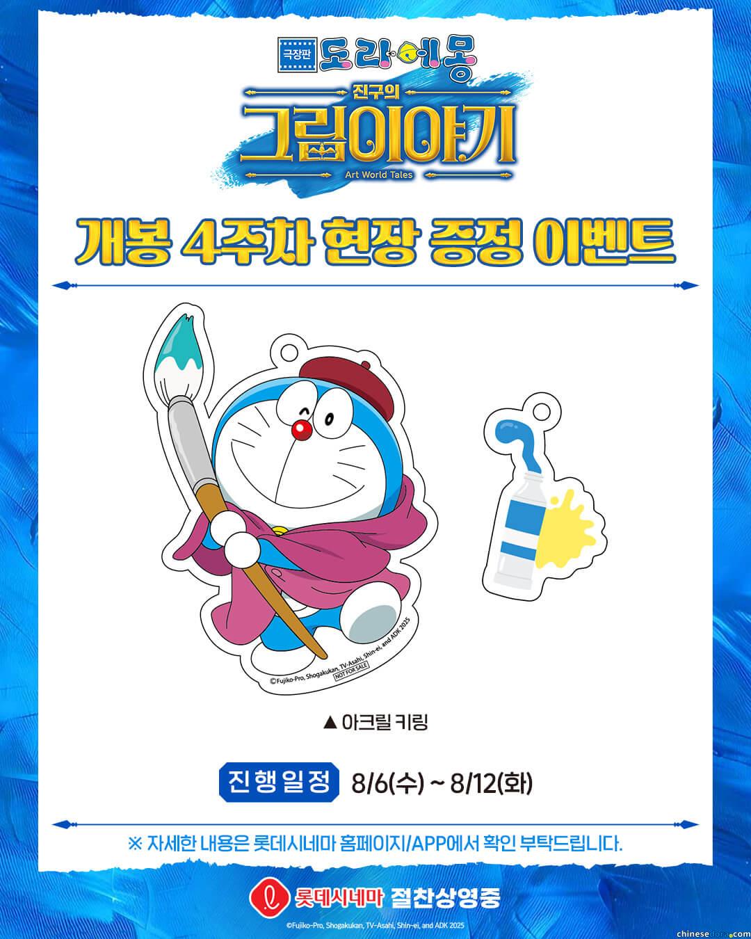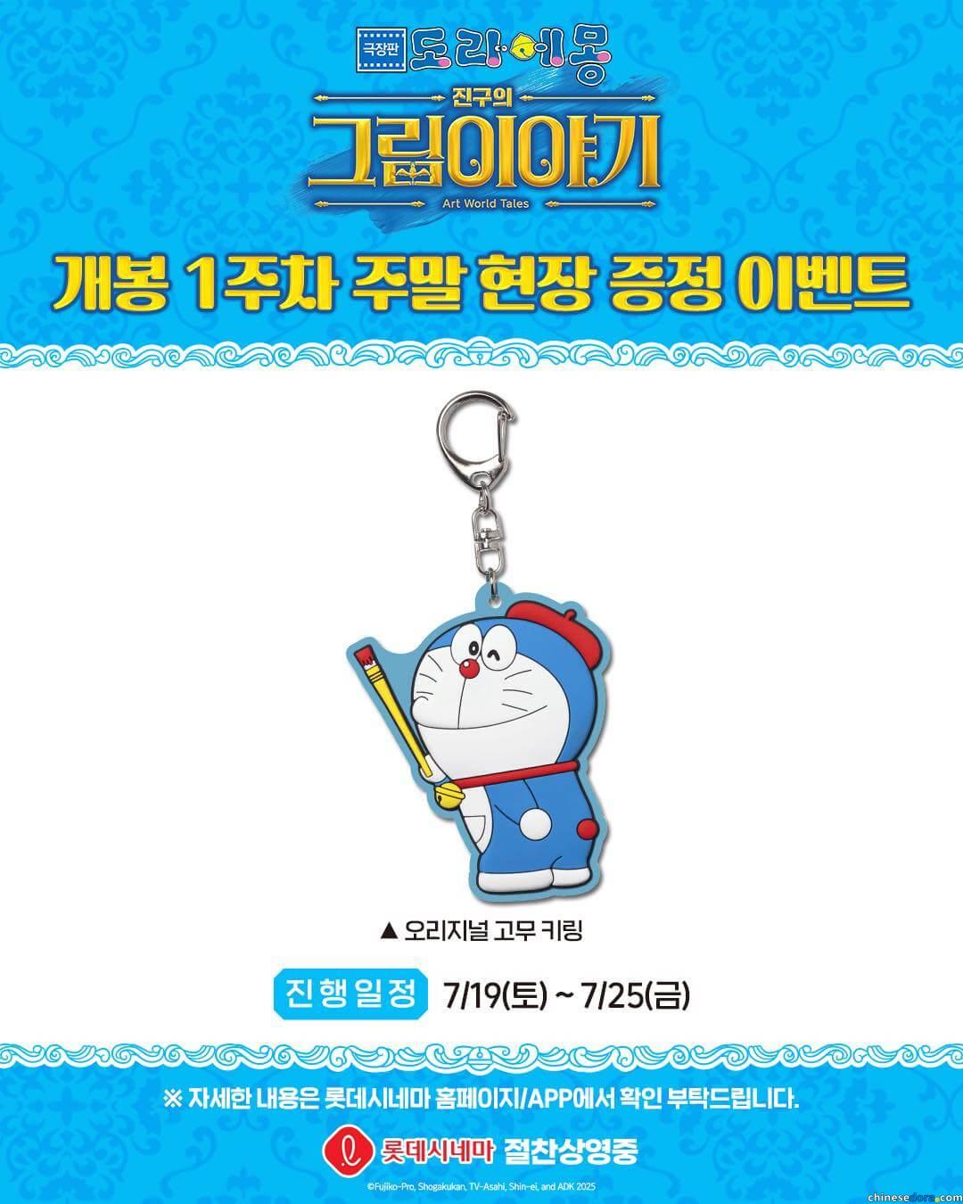 而「上映第四彈禮品」是以哆啦A夢戴著貝雷帽、手持畫筆造型特製的匙扣,是南韓全新推出的購票禮品。