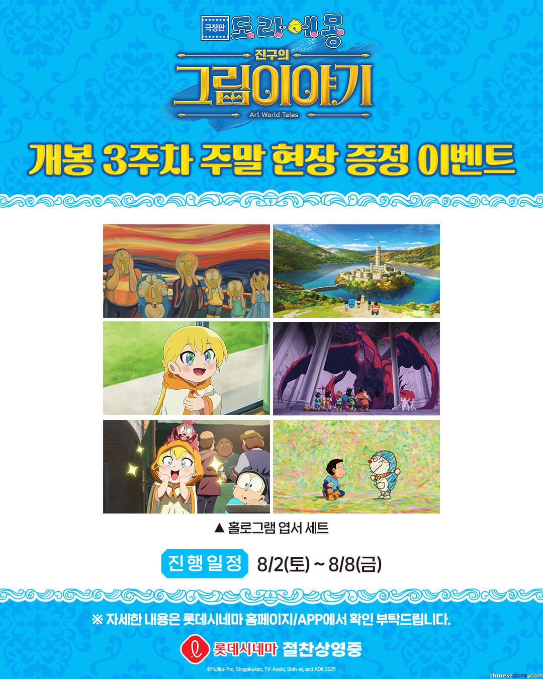 南韓推出各款《大雄的繪畫世界物語》戲票禮品,由上映一起計每星期、甚至每踏入新一輪上映週末都有新款禮品!每彈上映禮品按上映日起計每一週或兩週推出,週末禮品則按上映踏入每個週末起計一星期內限定。