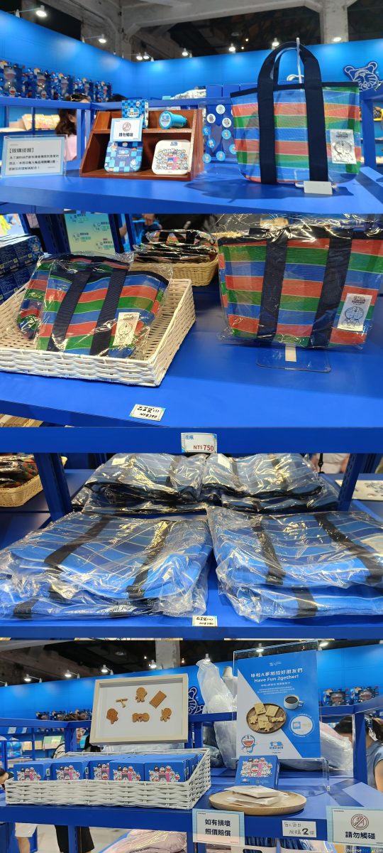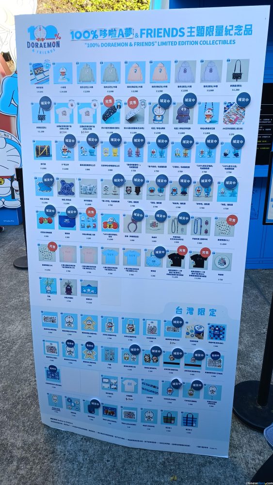 台北展紀念品看板標題,已更正為台灣譯名「哆啦A夢」。第58項「哆啦A夢貼紙」、第78、79項2款「飲料提袋」這些原監修中商品使用白色貼紙貼起來了。