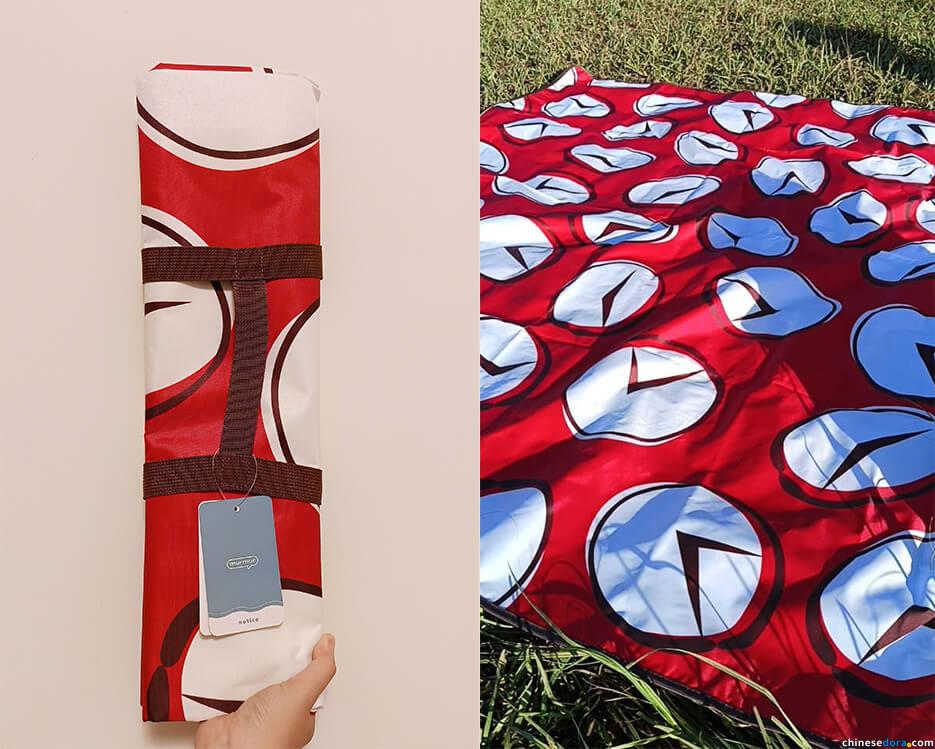 看照片就不用多說明,這款時光布圖案的野餐墊的實用性!全部攤開可以坐三到四個大人,還能在上面睡覺,不用擔心坐在濕濕的草皮上,弄髒了自己的褲子與包包,而且去看熱氣球的時候,能很快在草皮上認出這款具特色圖案的野餐墊。不使用時,就能摺收起來套進附上的咖色帶子,提著走很方便!