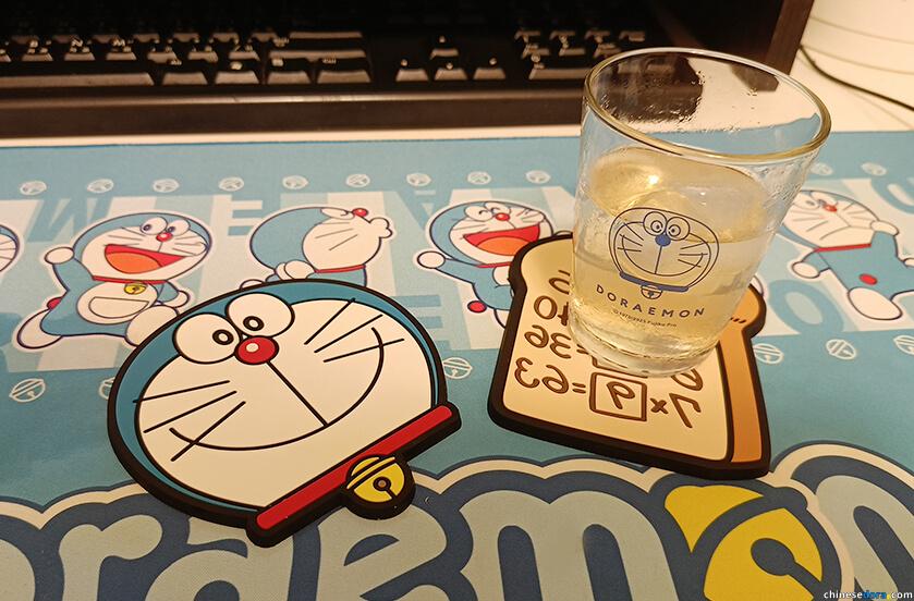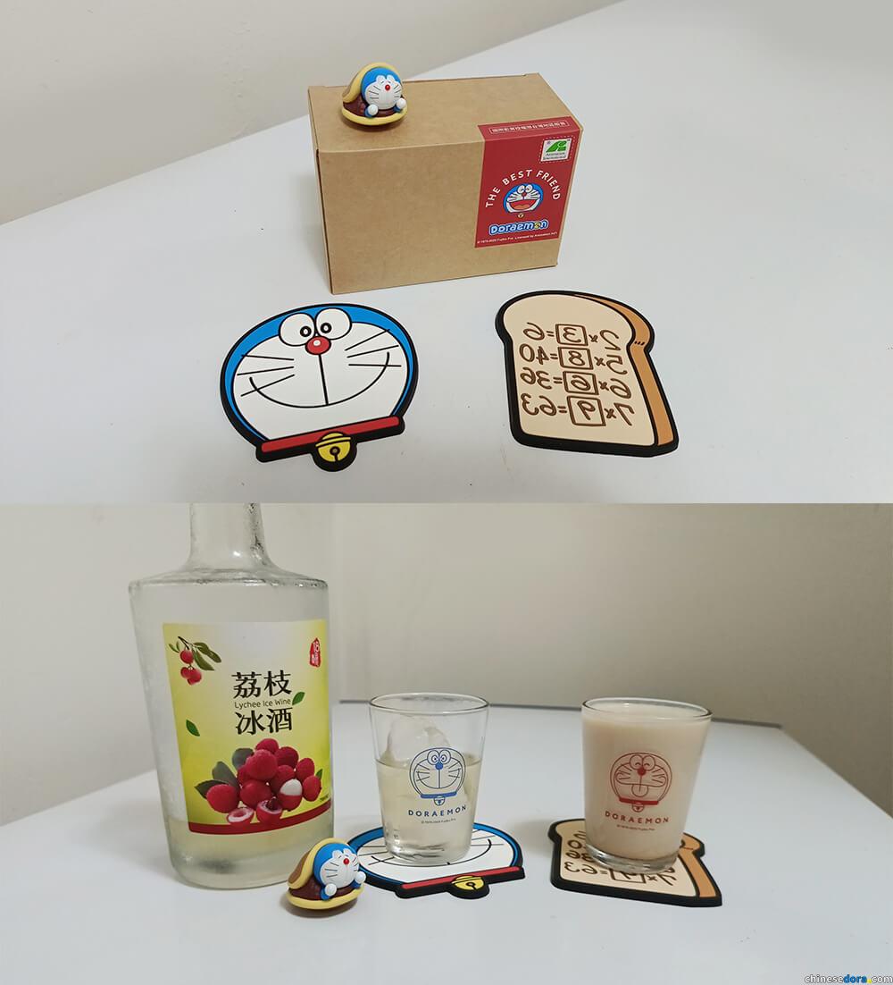 造型杯墊的材質是矽膠的感覺,不具備吸水功能,看到可愛的哆啦A夢與記憶吐司(記憶麵包),即使不作為杯墊使用,擺在桌上也有種療癒感。