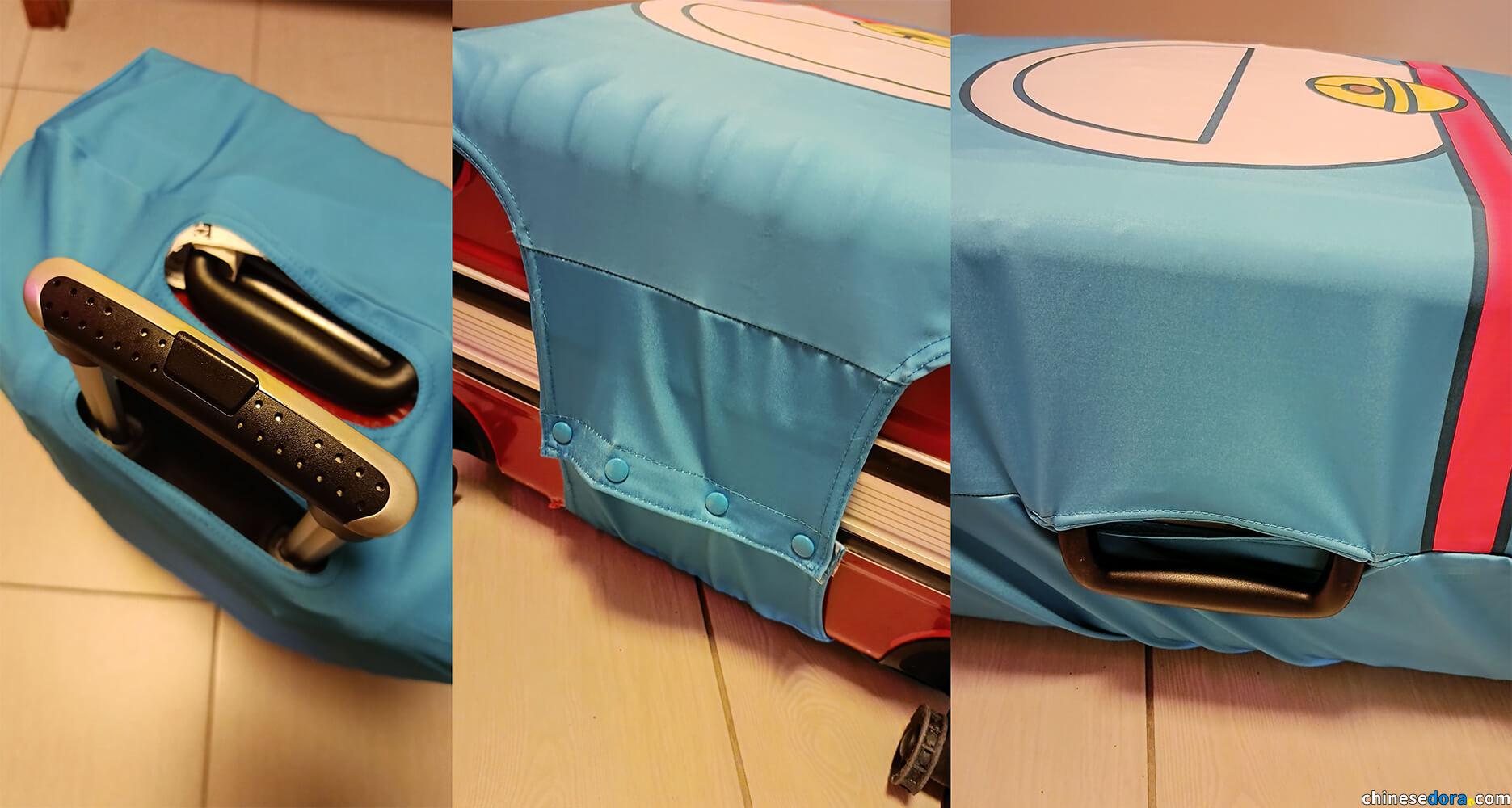 這款行李箱套適用於 30 吋的行李箱會比較適合,小於這個尺寸的話,推的過程中,行李箱的輪子會把哆啦A夢的肚皮弄髒喔。