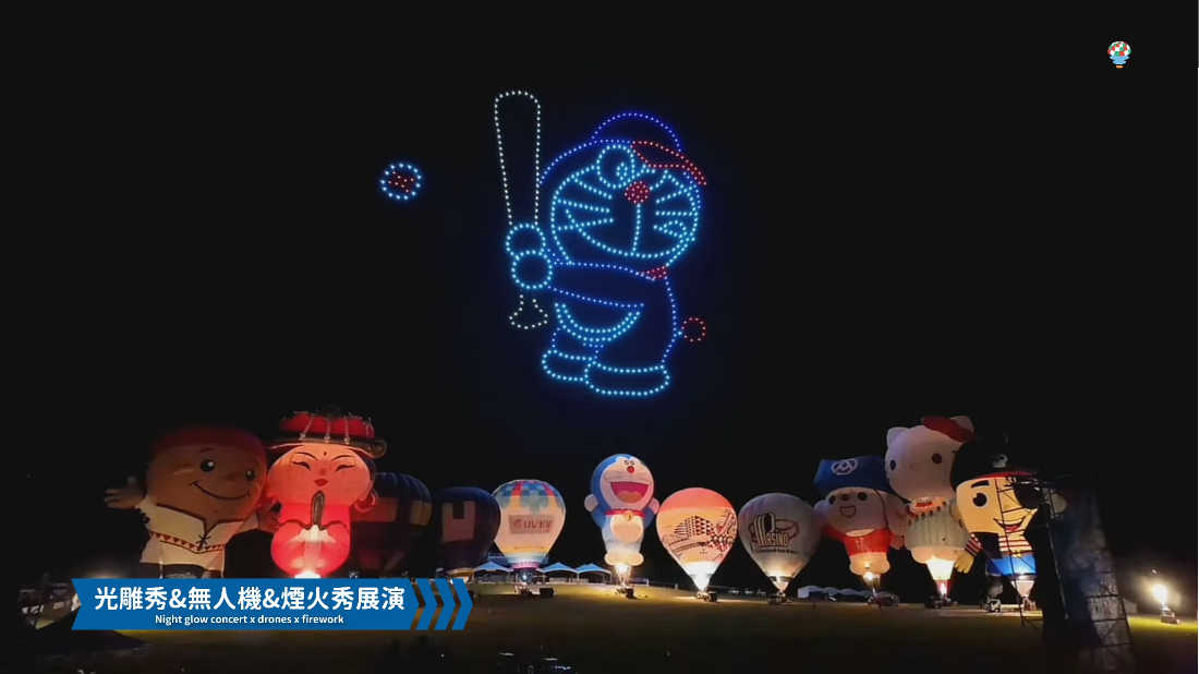 延伸閱讀[台東] 熱氣球嘉年華延期8/4開幕光雕音樂會 新增哆啦A夢打棒球、三仙台跨海步橋等無人機圖案