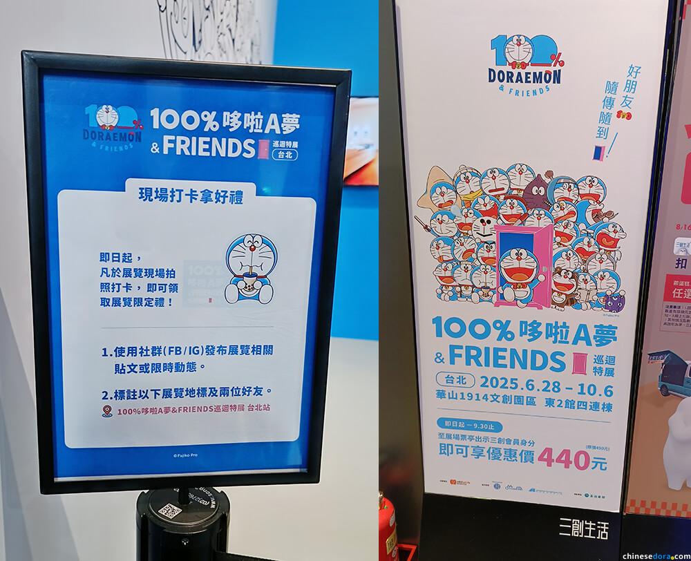紀念品商店入口處有個小牌子,於《100%哆啦A夢&FRIENDS 巡迴特展 台北站》現場拍照打卡,標註展覽地點與兩位好友,FB/IG發貼文或限時動態,給工作人員確認後,即可拿到一張喝珍珠奶茶的哆啦貼紙喔!