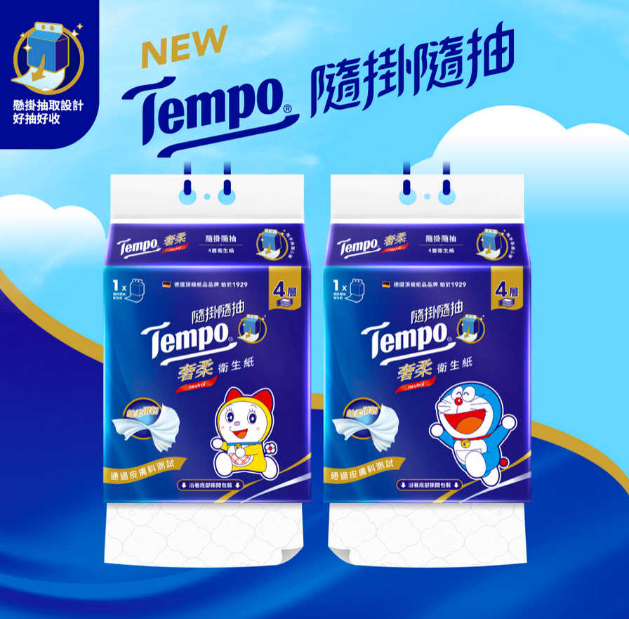 [台灣] TEMPO哆啦A夢4層隨掛隨抽奢柔衛生紙 康是美加價購帶回家
