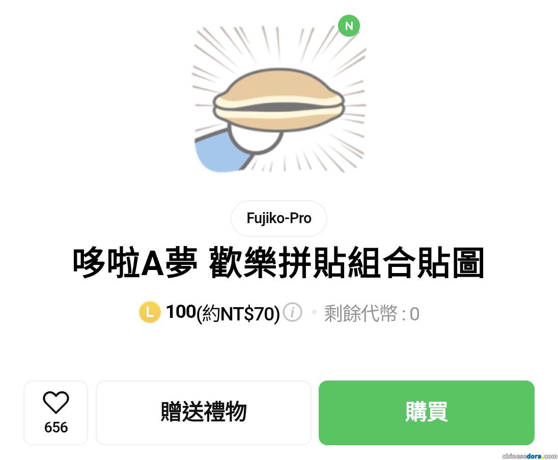 「哆啦A夢 歡樂拼貼組合」貼圖已於 LINE 上架,貼圖可以用 100 line points,售價為 60 元台幣兌換。