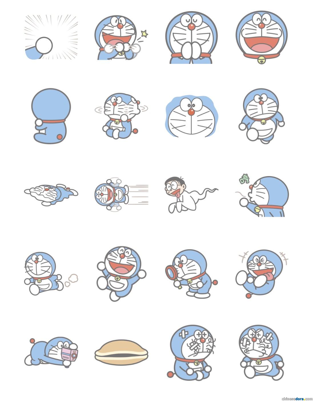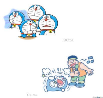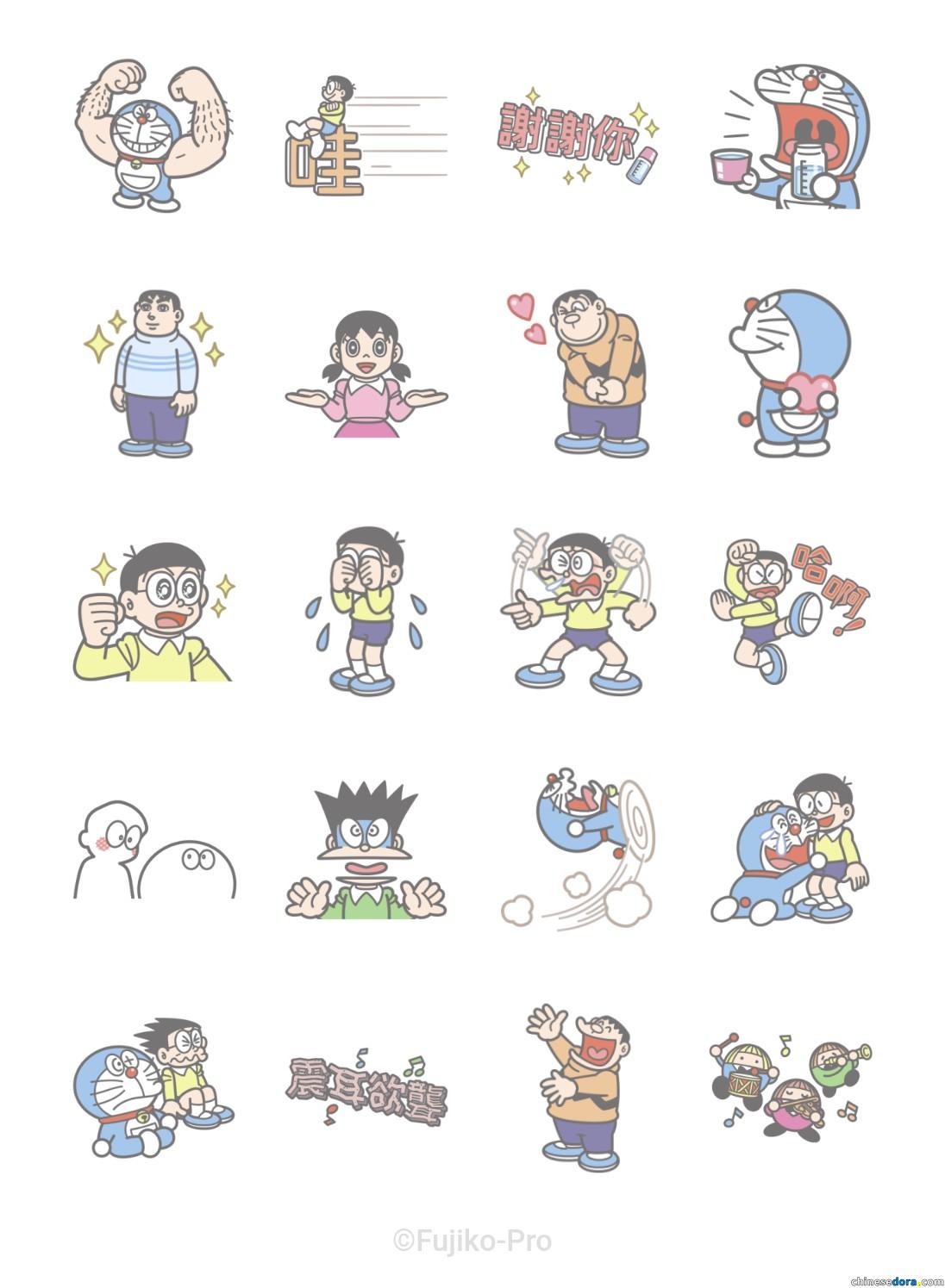 這款貼圖有搞怪的粗壯毛毛手哆啦A夢、七月到處飛的阿飄大雄,表情害羞又猥瑣的胖虎。