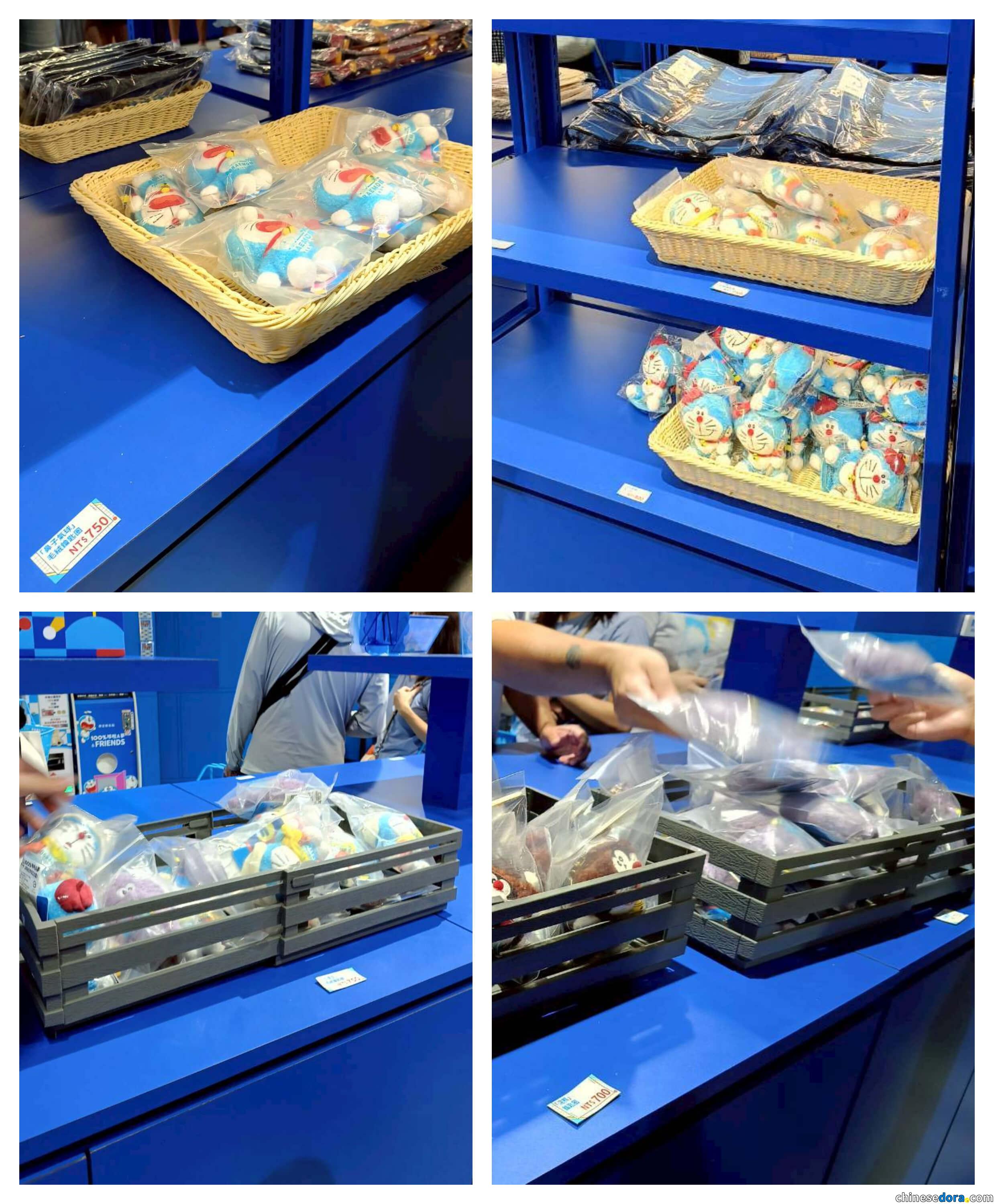 娃娃商品部分,最多人想要的紫薯哆啦貨源充足,只有少部分商品如銅鑼燒哆啦A夢、肩膀毛公仔的黃色元祖哆啦A夢出現快速完售的情況,並且工作人員會持續進行上架補貨。
