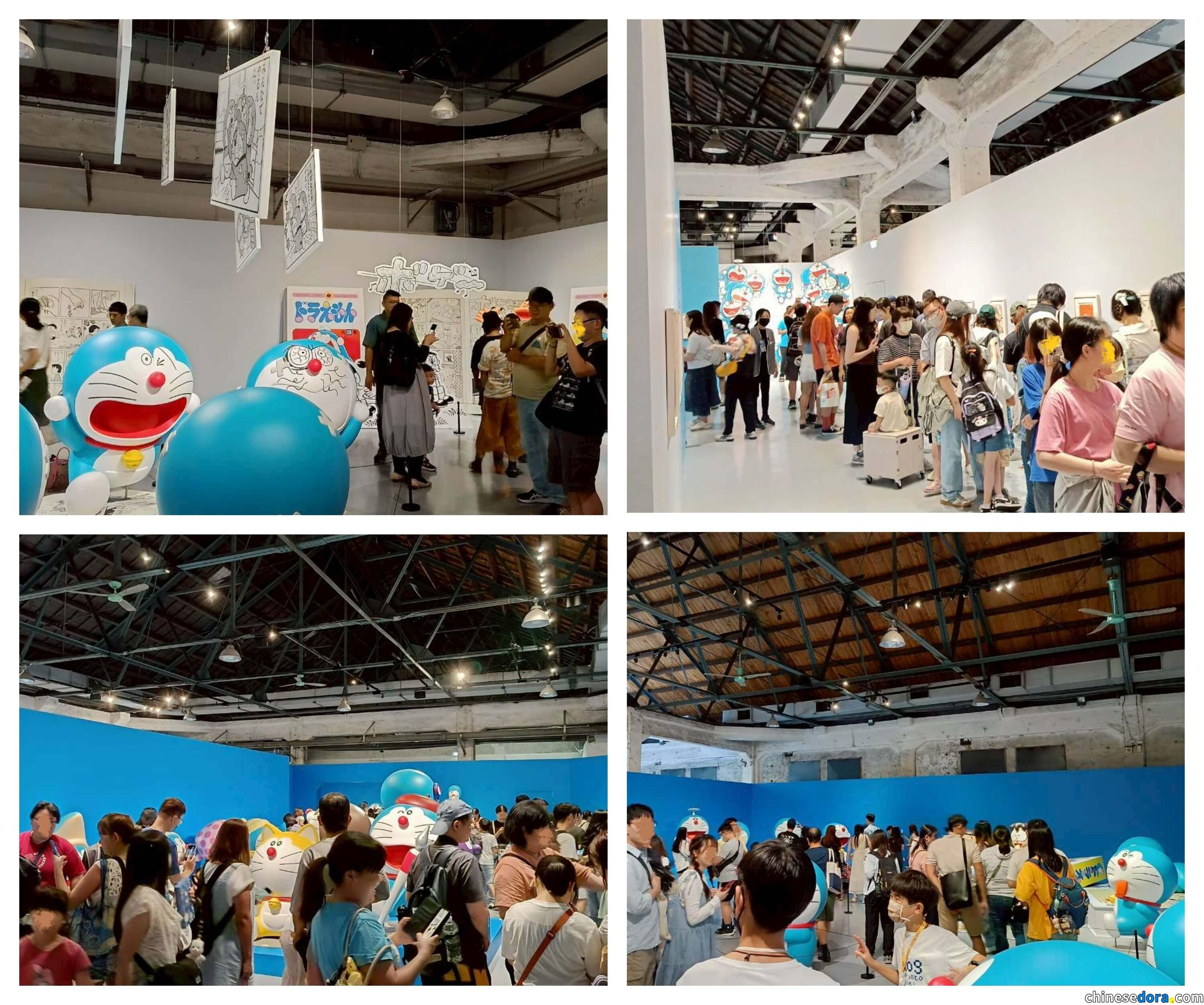 與上午首批入場空曠的展區不同,人潮明顯變多,並且很多家庭帶著小朋友來開心看展與拍照留念,熱門打卡拍照區「哆啦A夢的彩色走廊」更分成了兩排 S 形隊伍動線,原畫區前面也擠滿了人。