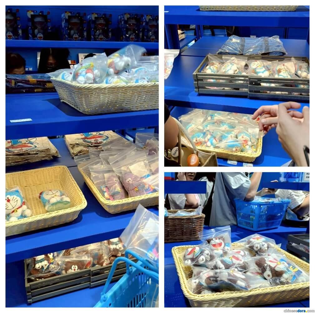截至上午 10 點半,有香味的紫薯、打掃、狸貓、打雪仗、畫家哆啦A夢娃娃貨源充足;鼻涕泡泡、銅鑼燒哆啦A夢娃娃(蛋糕味香氣)一上貨架,就馬上被旁邊的民眾搶光。100%星光大道(西裝款)哆啦娃娃今日配額數量售完,這款非常少量。