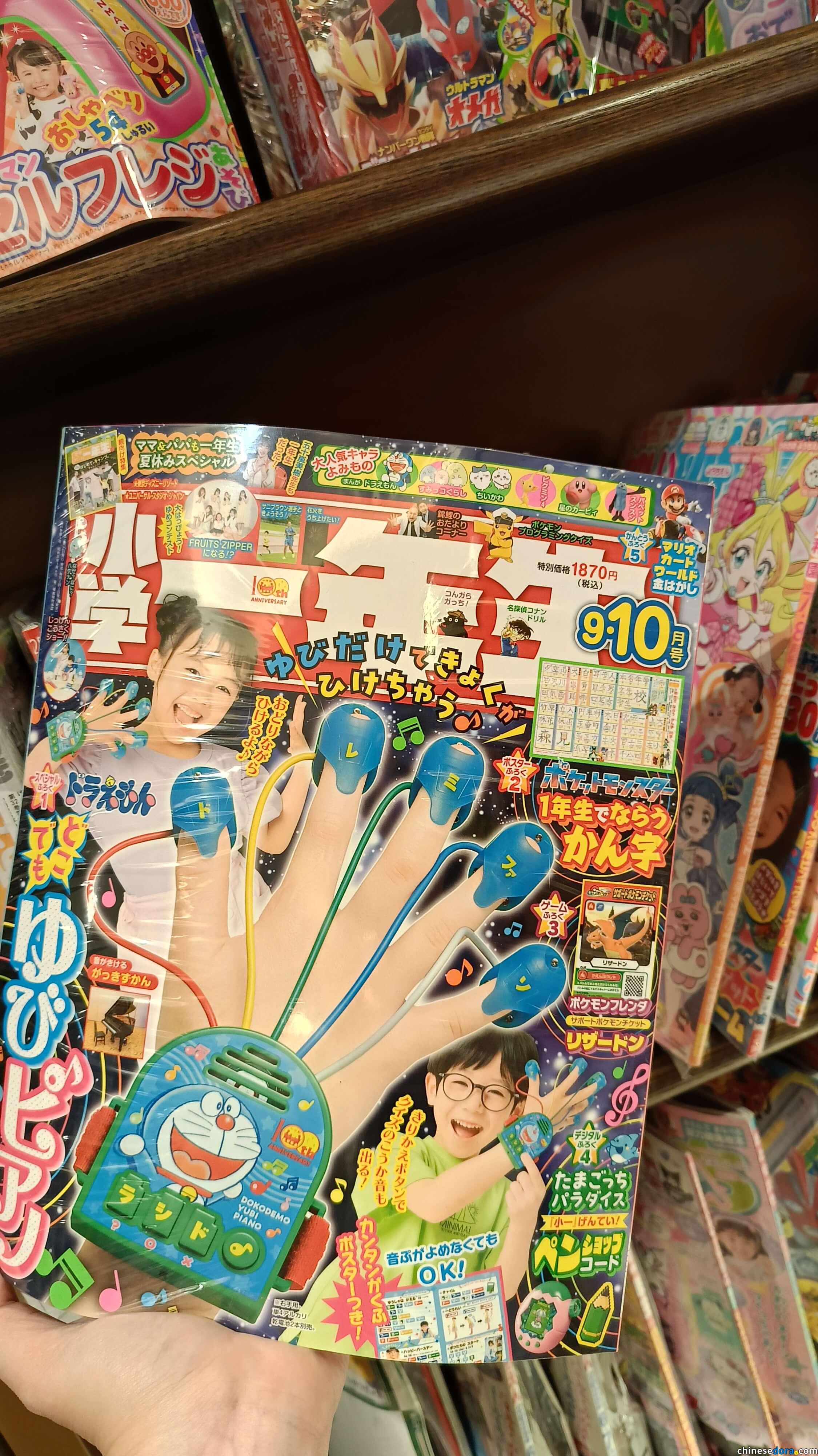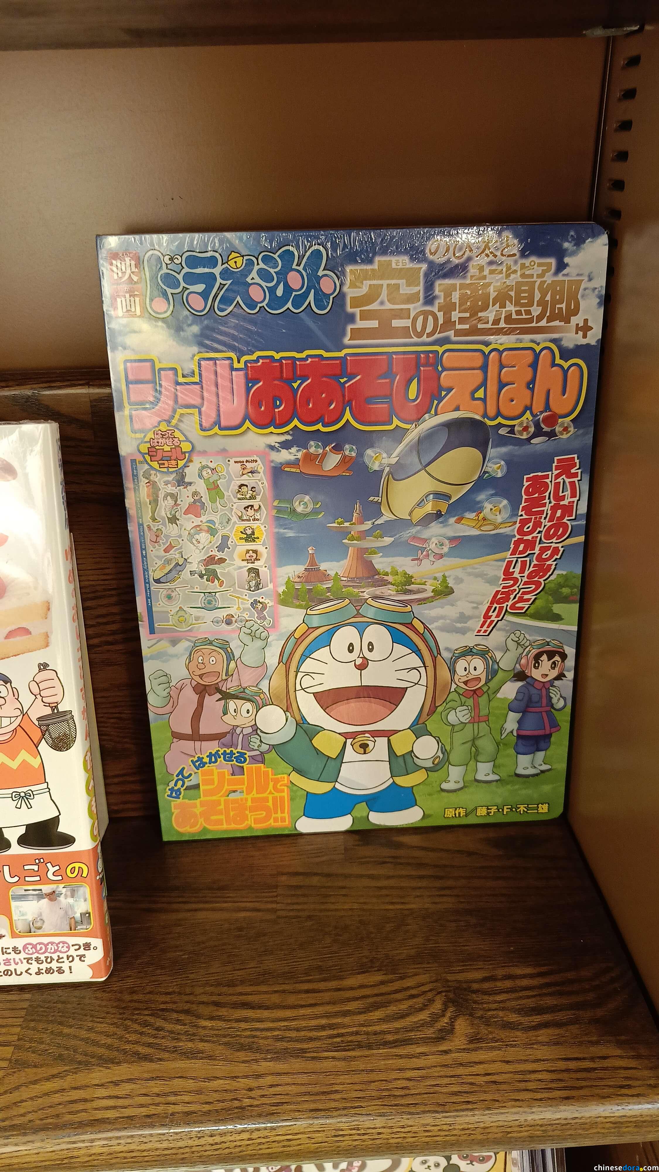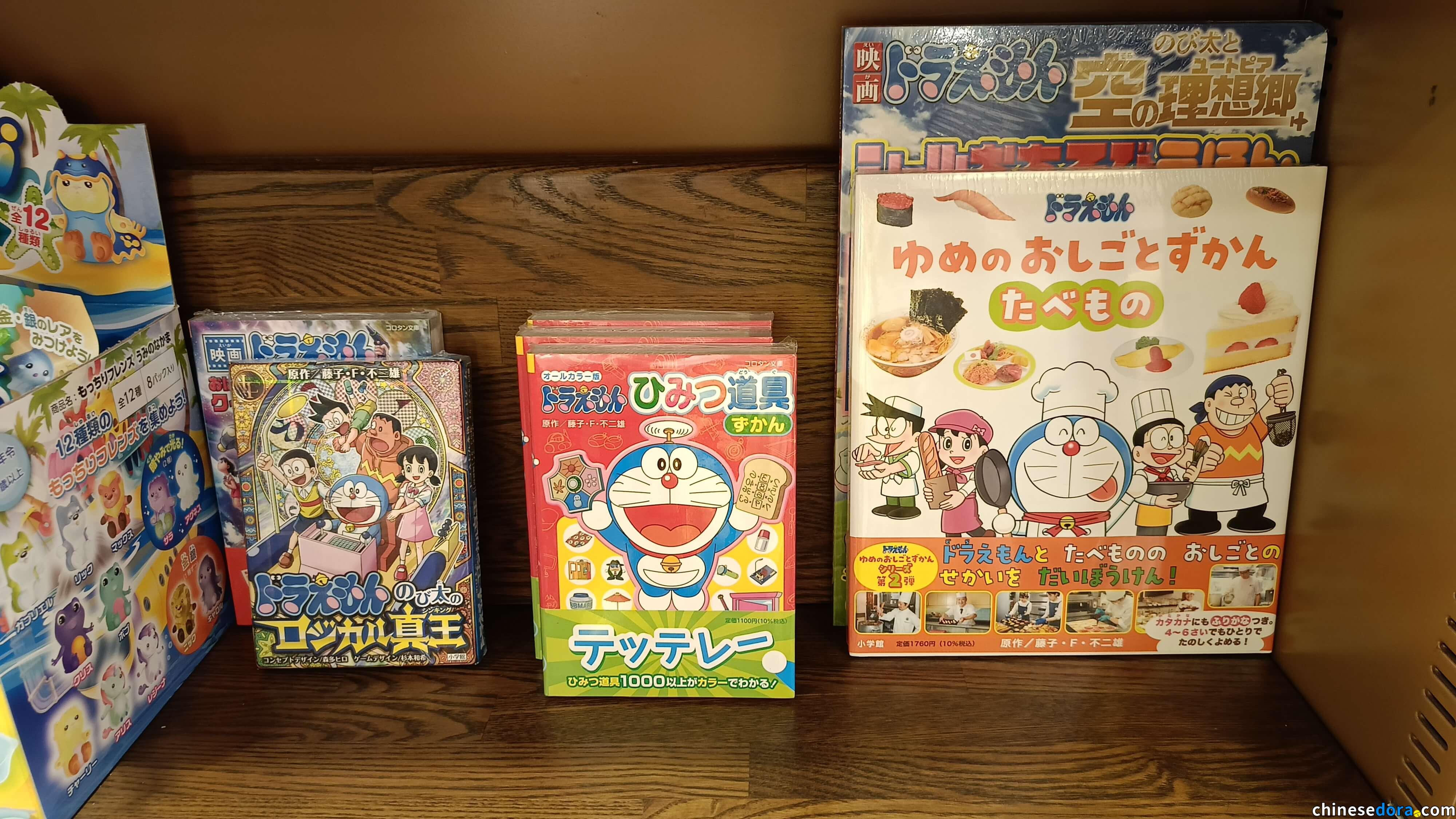 走進淳久堂書店裡面的書架上,在放置漫畫的兒童類別能看到其他哆啦A夢的日文書籍,包含附錄為「哆啦A夢 手指鋼琴遊戲組」《小學一年生》9-10月合併號、還有《大雄與天空烏托邦》貼紙遊戲繪本,架上庫存不算很多,大概只有一兩本左右。