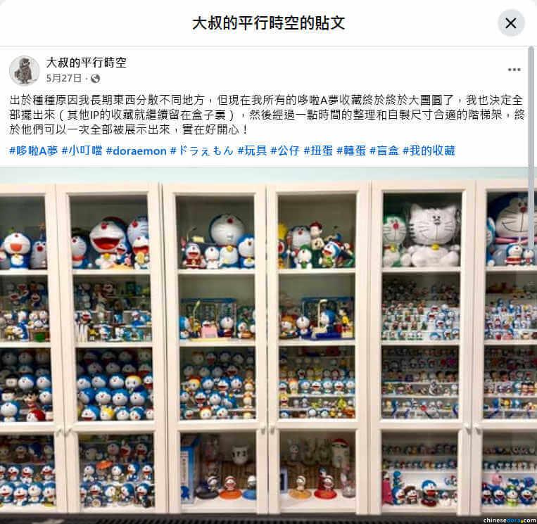 在 Facebook 社團方面,也出現了這類詐騙貼文,哆啦A夢收藏家本人「大叔的平行時空」也有出來澄清自己的哆啦A夢收藏照片被盜用。