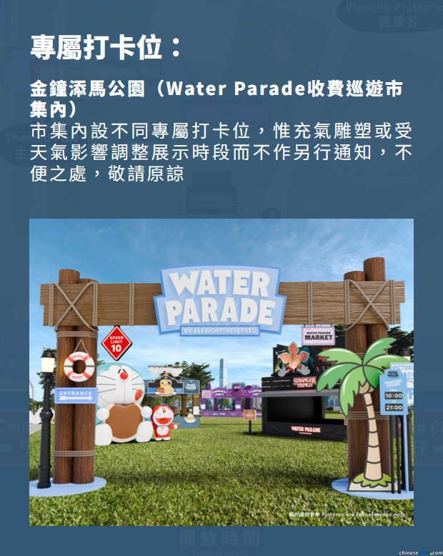 雕塑在海上展示期間,毗連的中西區海濱長廊中環段(近添馬公園)將於同期舉辦「巡遊市集」,「多啦A夢」、「芝麻街」、「滑嘟嘟」跟其他國際 IP(包括 Netflix《KPop獵魔女團》、《怪奇物語》(Stranger Things) 第 5 季和《魷魚遊戲》、SNOOPY 與《花生漫畫》家族、香港經典 TOLO 元祖橡皮鴨)齊聚一堂,設有快閃店、主題餐飲、遊戲攤位、專屬打卡點以及深受年輕人喜愛的扭蛋區。