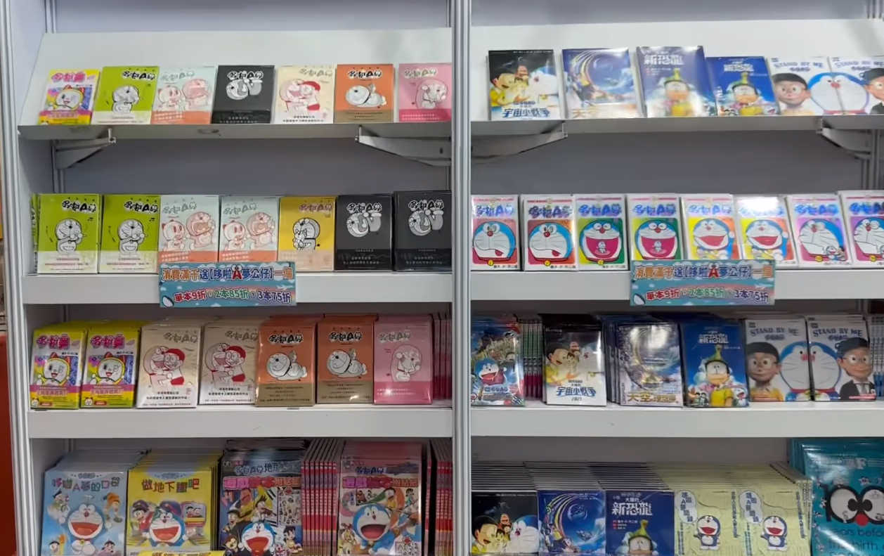 從網友照片中能看到近期出版的《特別精選篇》漫畫、貼紙繪本等架上齊全,現場消費滿一千元還贈送「哆啦A夢公仔」一個,購買青文出版書籍,還有優惠價單本9折、2本85折、3本75折。