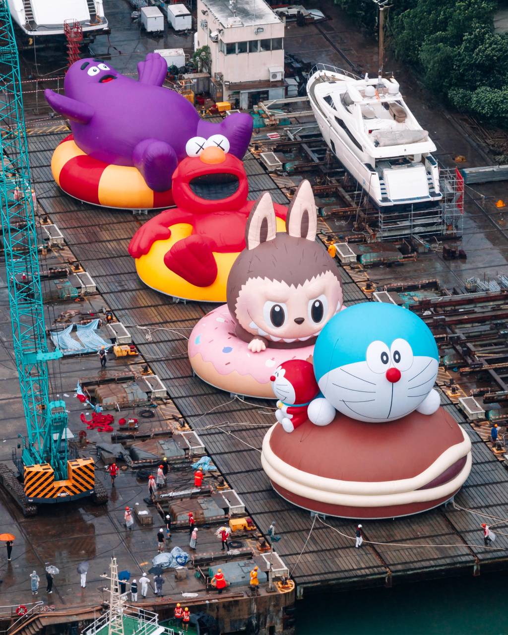 這次活動的充氣展品,一次過帶來世界聞名的 4 個 IP 角色,包括在日本及香港等地大受歡迎、來自未來世界的貓型機械人「多啦A夢」,還有美國藝術家 KAWS 與美國兒童節目《芝麻街》聯乘新造型的「Elmo」、來自美國快餐店品牌麥當勞創作的奇幻世界 McDonaldland 的人氣吉祥物「滑嘟嘟」以及香港藝術家龍家昇創作、POPMART 旗下的「LABUBU」。