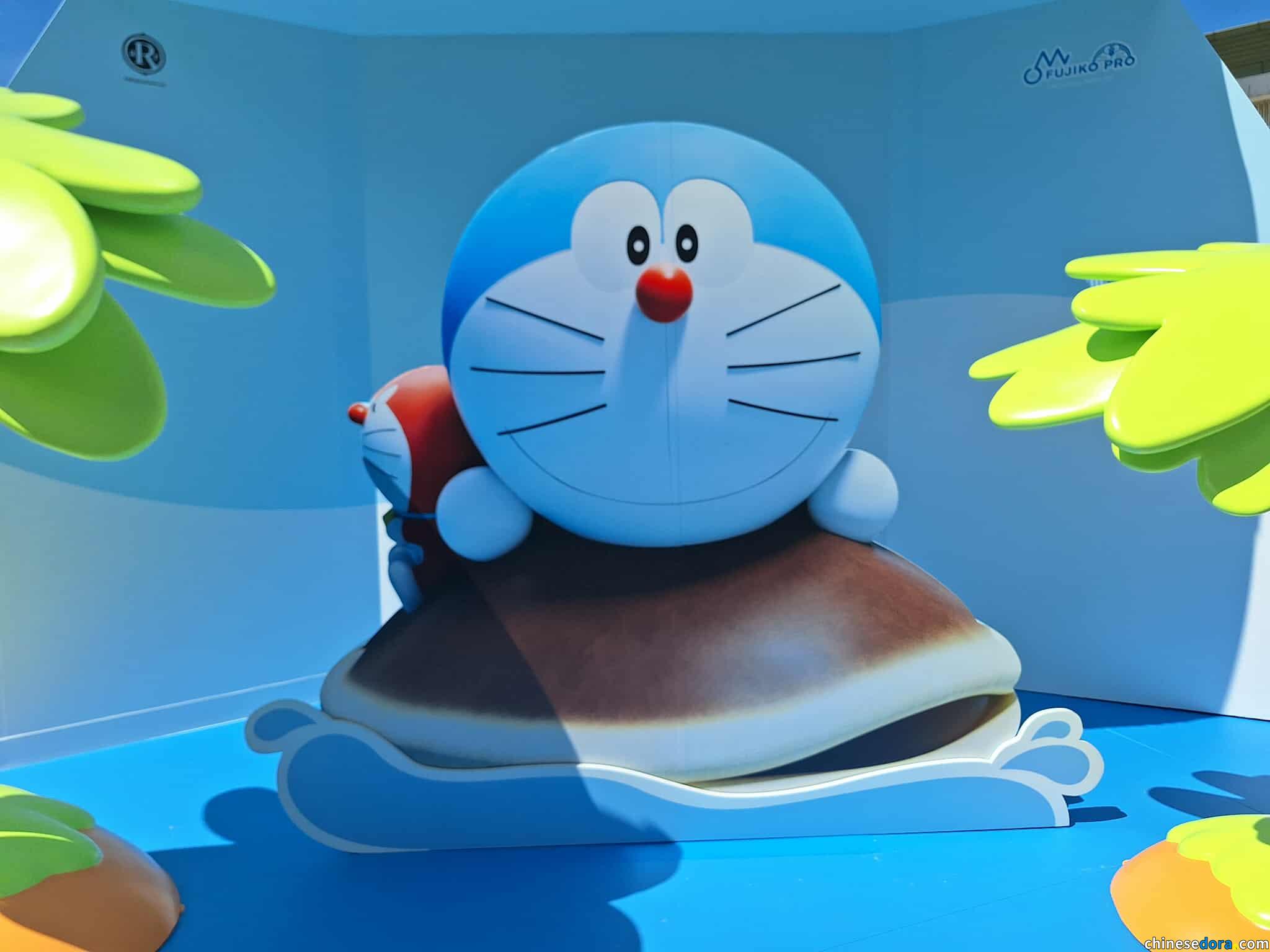 兩棵棕櫚樹之間就是多啦A夢展板。(本站攝影)