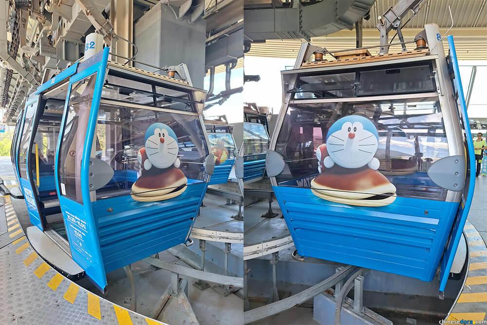 多啦A夢與迷你多啦、豆沙包纜車車廂。(資料圖片,本站攝影)