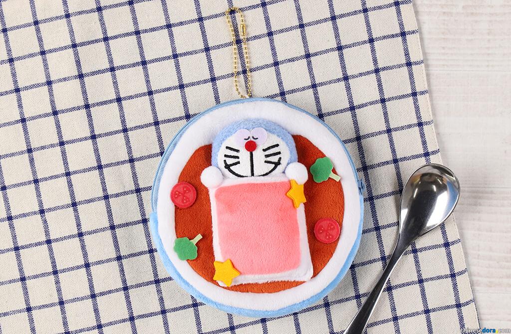 收納包重現了哆啦A夢(港譯:多啦A夢)在蓬鬆被窩裡熟睡的模樣,盤子部分設計為圓形的收納包。