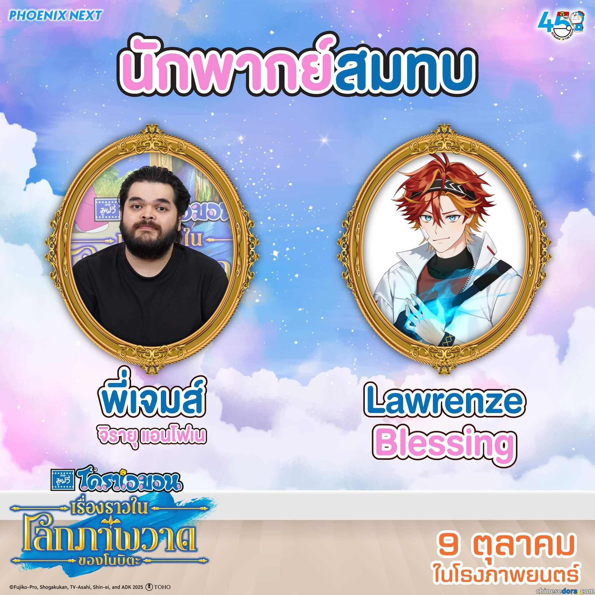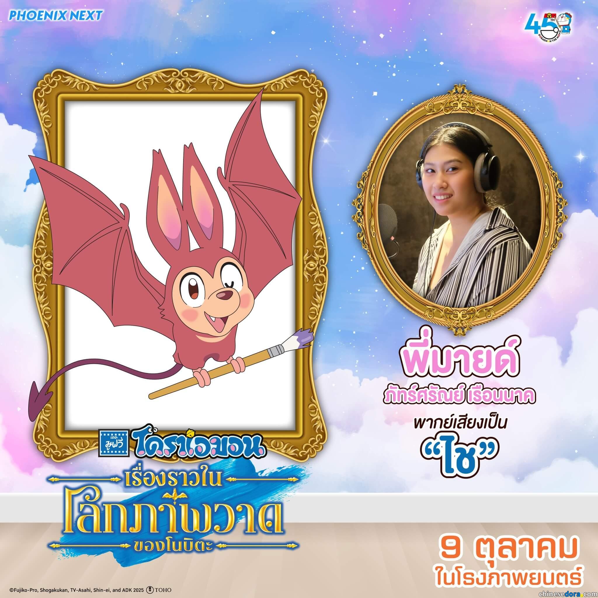 2025 年第 44 部哆啦A夢(港譯:多啦A夢)電影《電影哆啦A夢:大雄的繪畫世界物語》(當地譯名:โดราเอมอน เดอะมูฟวี่ เรื่องราวในโลกภาพวาดของโนบิตะ)於 10 月 9 日上映。為迎接泰國觀眾,特別邀請多達 21 位泰國知名配音員與當地 Vtuber 擔綱此作的泰語配音陣容,展現哆啦A夢電影中資深聲優與新興客座配音的多樣化表現。
