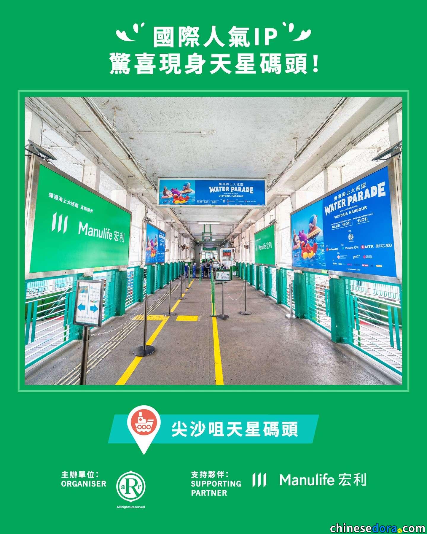 「維港海上大巡遊」即將舉行,港島區部分巴士站及天星碼頭已經換上活動的全新戶外廣告牌,多啦A夢跟 IP 人物同框的海報相當搶眼!