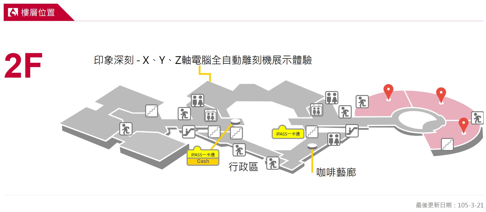 高雄科工館北館 2 樓樓層平面圖,紅色標記處為哆啦A夢展覽使用的展廳。(國立科學工藝博物館)