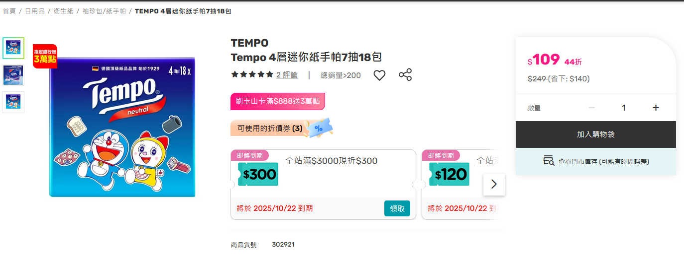 延伸閱讀[台灣] 給你日常清潔應援!TEMPO 哆啦A夢聯名紙巾.衛生紙MOMO購物限定促銷中
