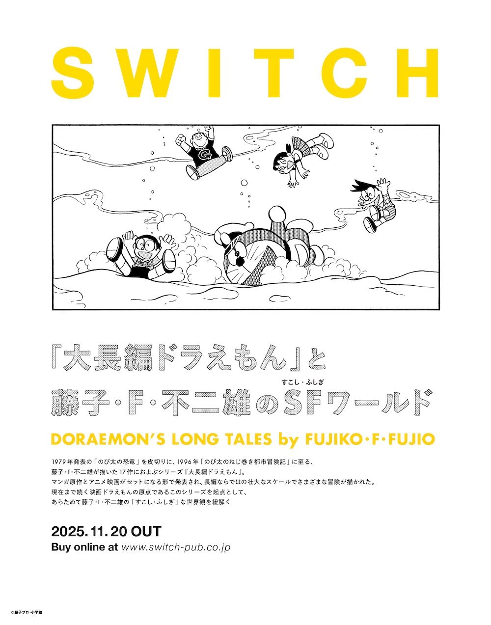 日本出版社 SWITCH PUBLISHING 旗下雜誌《SWITCH》今年 12 月號特集《「哆啦A夢大長篇」(多啦A夢大長篇)與藤子.F.不二雄的 SF 世界》,即將帶領大家探索藤子老師的漫畫世界!