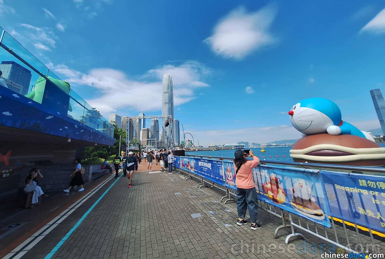 不過,如果想比較清晰遠距離拍攝到迷你多啦的正面,建議可在海濱長廊(市集範圍外)地面靠中環的方向望過去。