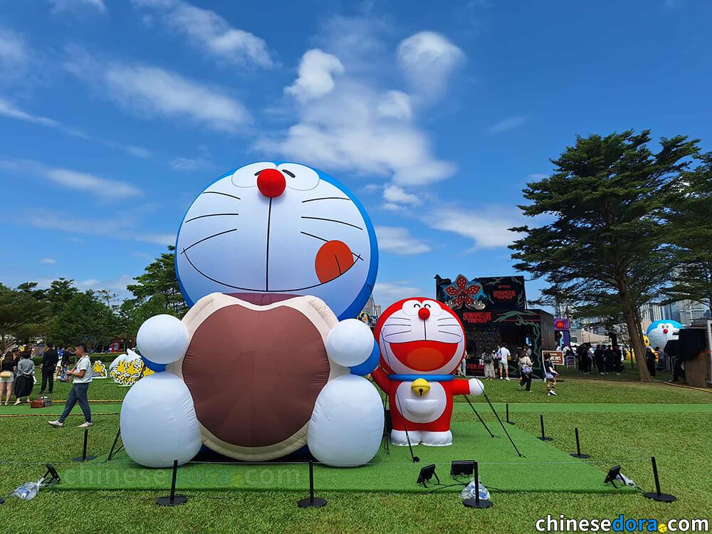 在快閃店的左邊,還有另一個多啦A夢專屬打卡點。11 組場景裝飾並列放在空地上,十分壯觀。