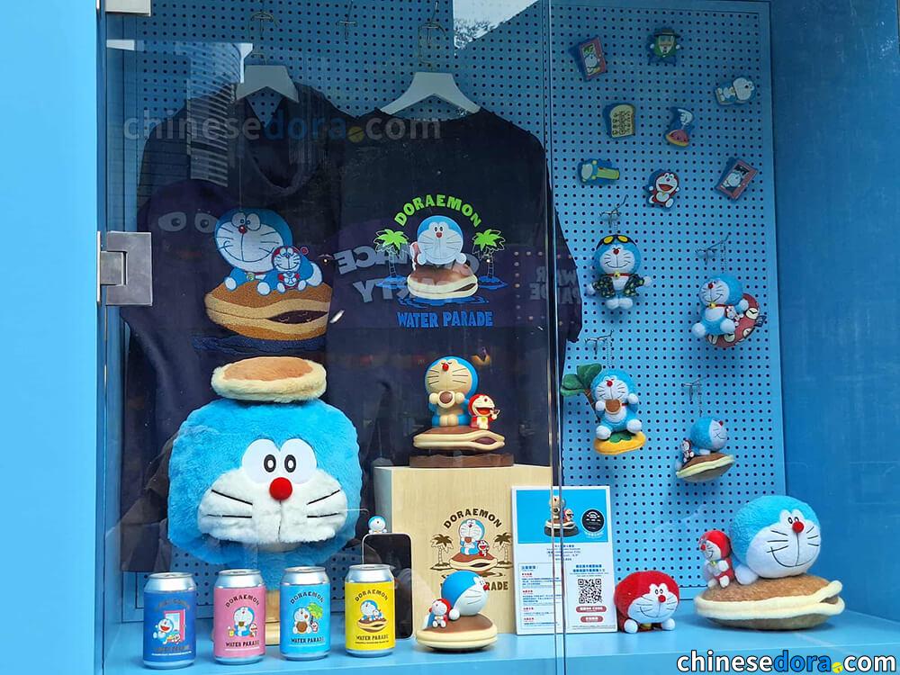 多啦A夢快閃店就在整列商店的最右邊。店舖上方掛著多啦A夢、迷你多啦、棕櫚樹和豆沙包造型的商店招牌,下方亦可見多啦A夢的頸圈和鈴鐺配色融入其中。