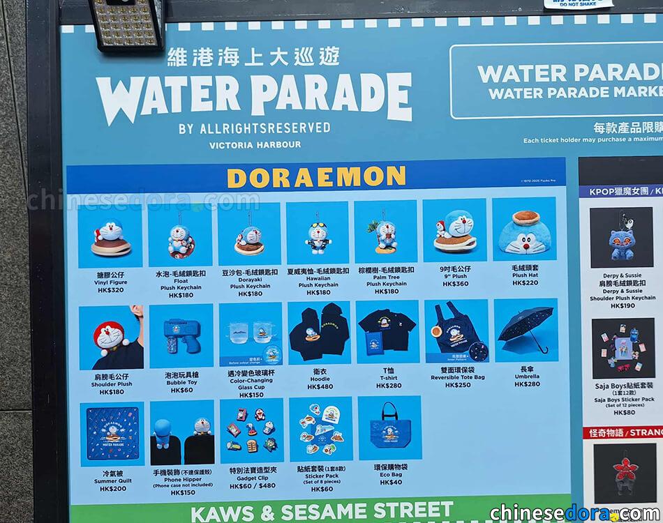 不同的是,主題樂園通常以自家品牌角色為主,代理商在動漫節之類的活動攤位亦集中在日韓引進作品。來自日本的「多啦A夢」跟香港本地、世界各地的角色品牌同場出現,可說是難得的跨界同框。而多啦A夢伴隨「豆沙包水上飄」在海上出現的情景,配搭香港景色,相信也是粉絲意想不到的地方之一。