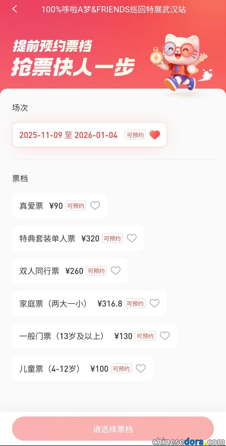 「100%哆啦A夢&FRIENDS」巡迴特展武漢站門票將於 11 月 1 日上午 11 時起正式在貓眼公開發售(簡體中文)。