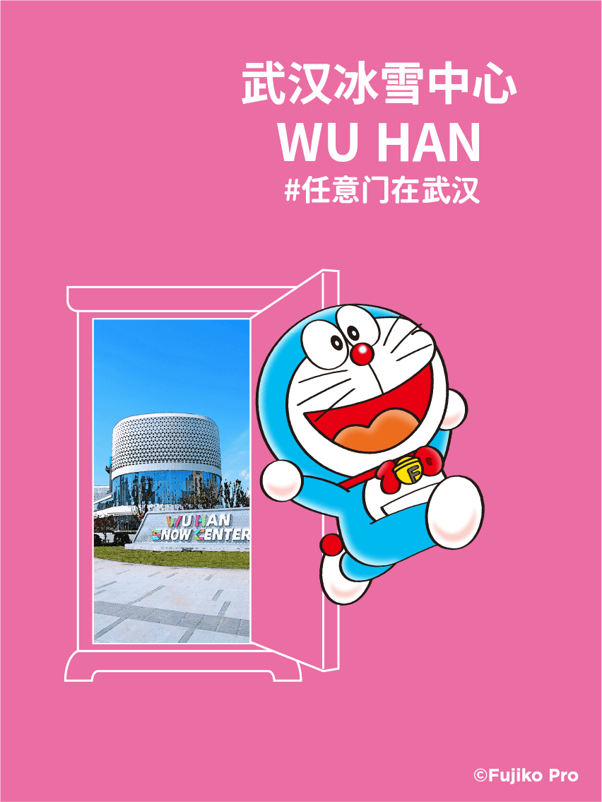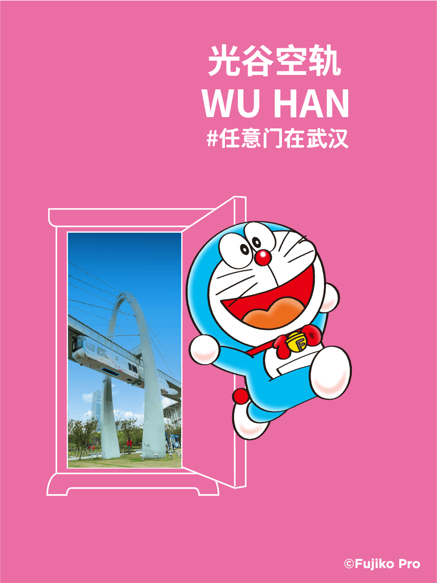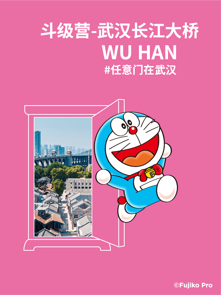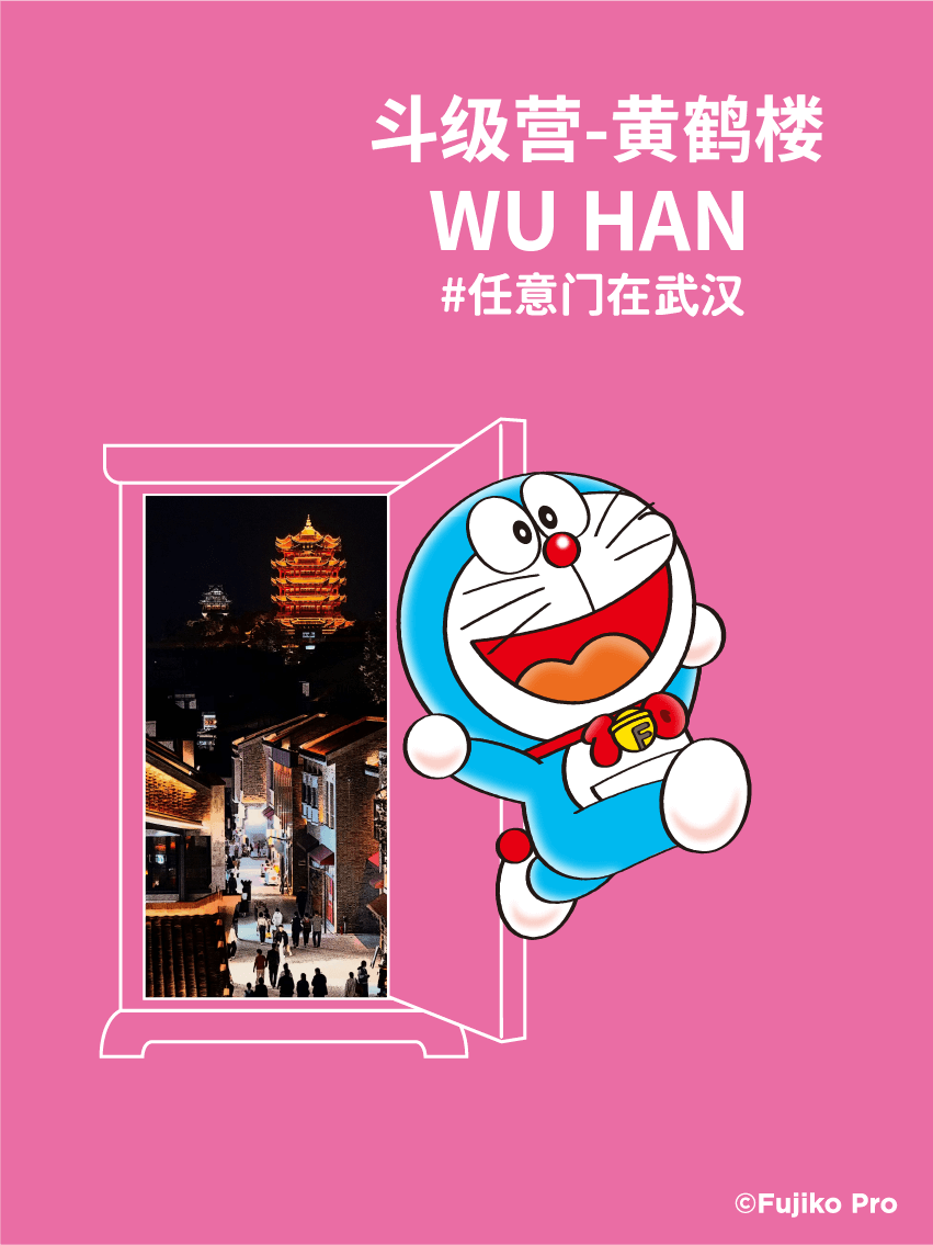 武漢站的打卡活動在 2025 年 10 月 31 日至 2026 年 1 月 4 日舉行,與任意門互動合影發抖音,並帶上活動話題「#任意门在武汉 #跟着哆啦A梦打卡武汉」(簡體字),即可在武漢恒隆廣場 B1 服務台領取週邊一份。數量有限,換完即止。