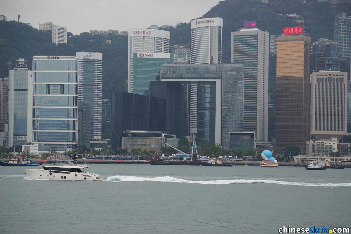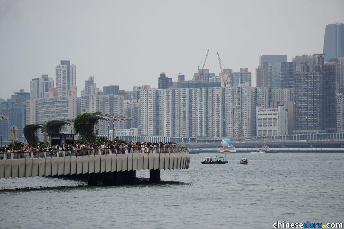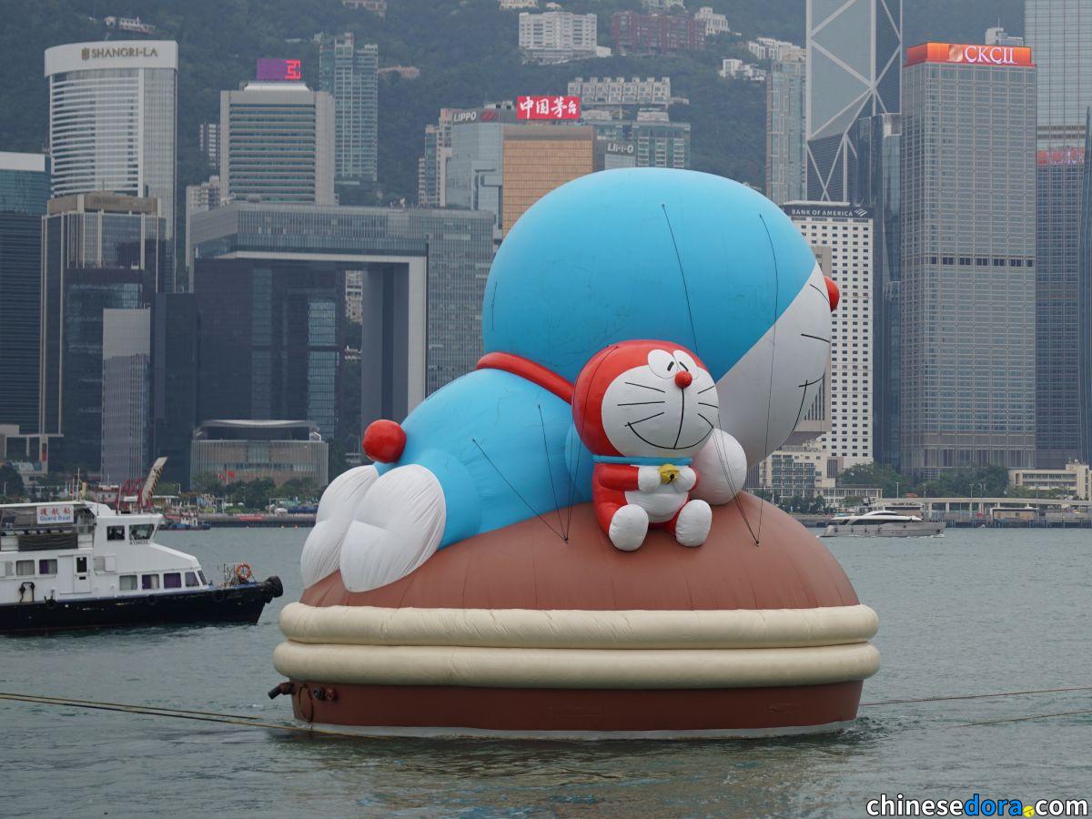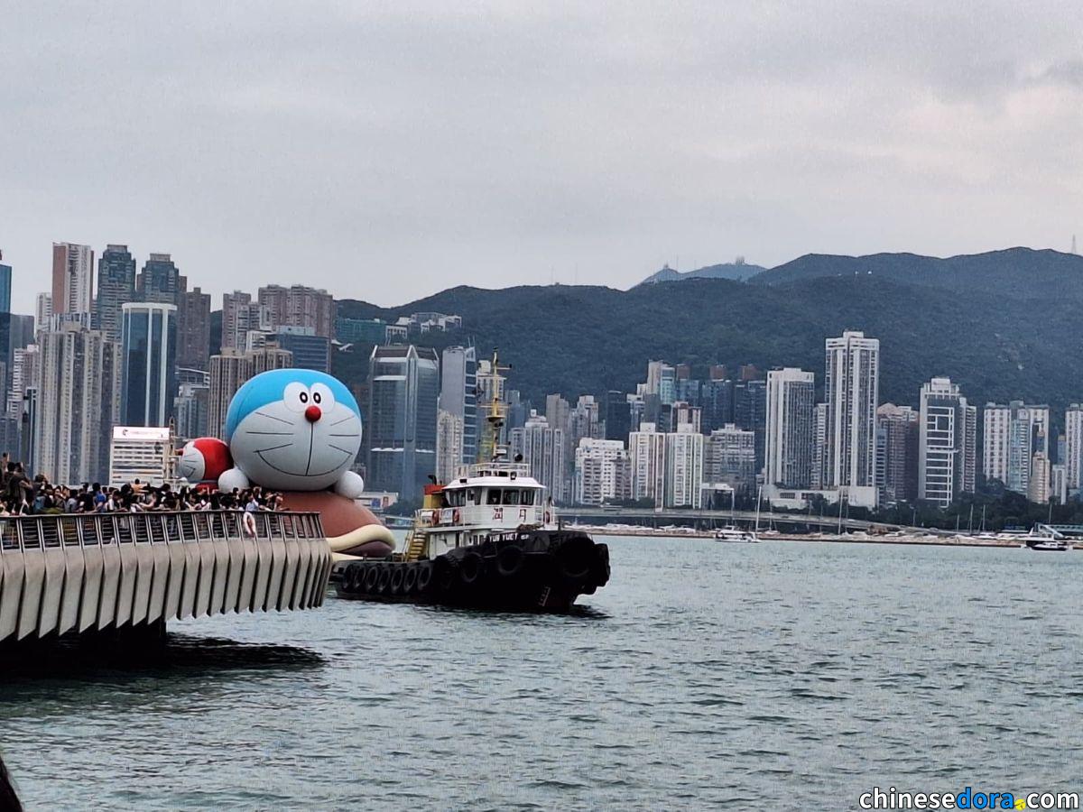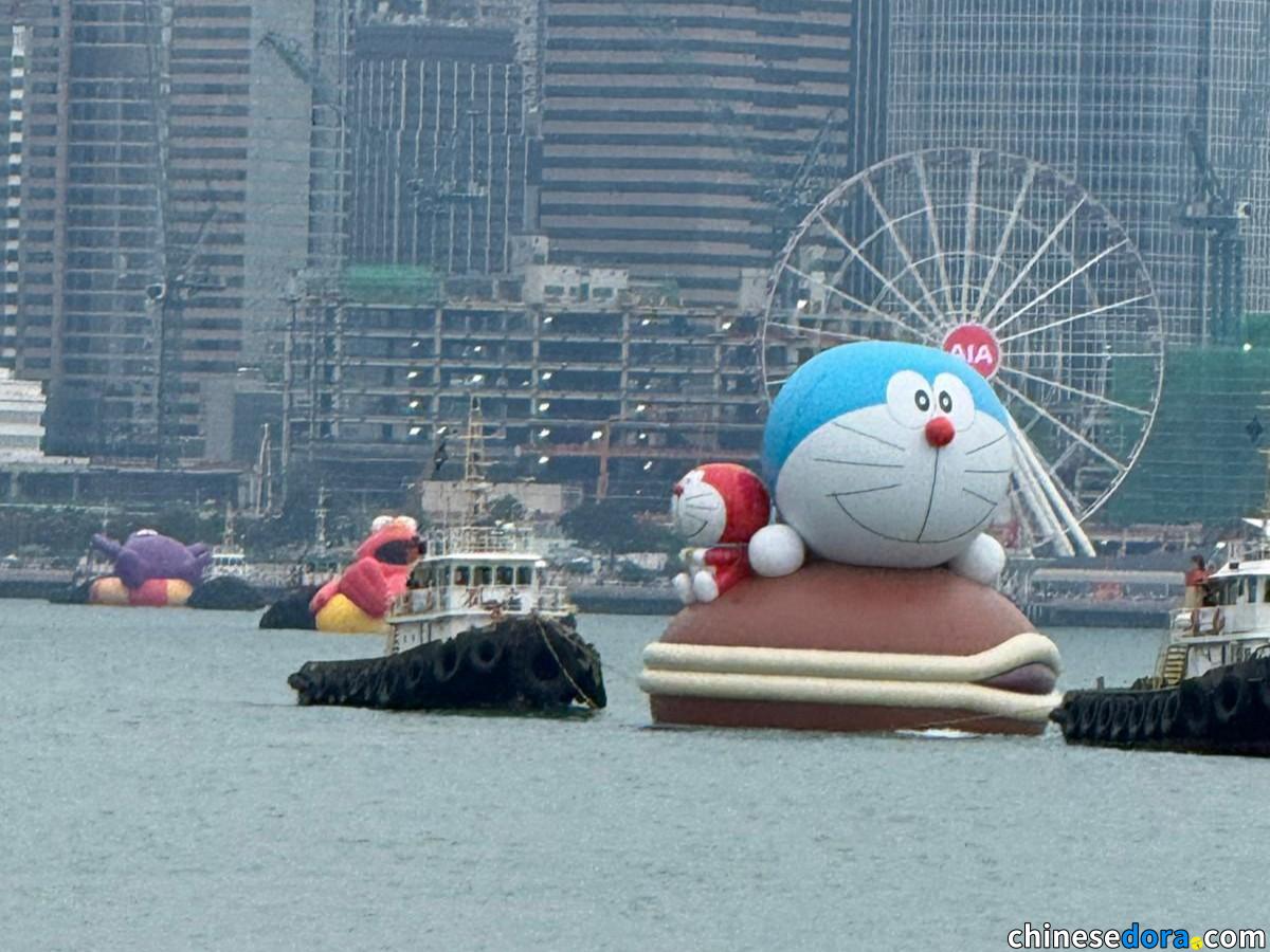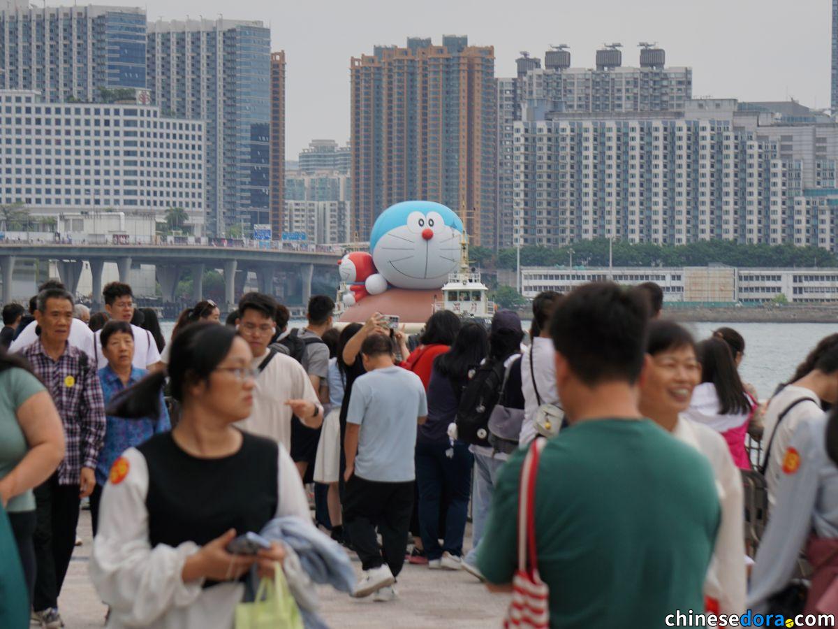 與此同時,充氣人物展示的方向亦是一大亮點。本來停泊在添馬公園的「多啦A夢」以正面示人,在海濱長廊較近中環的位置才能更清楚看到「迷你多啦」。