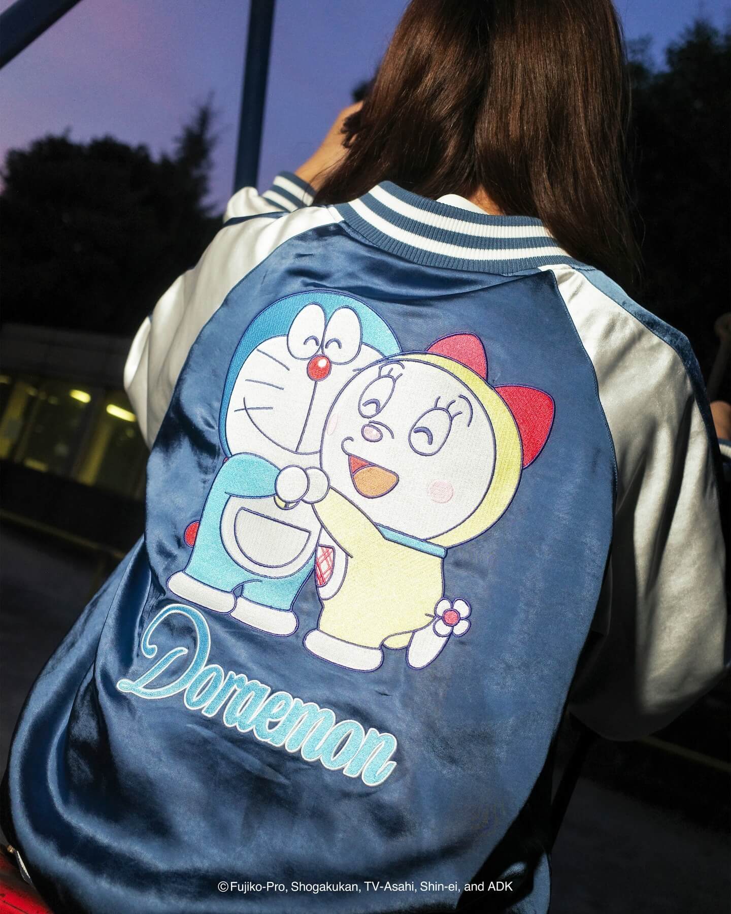 此系列主打商品為流行可正反兩穿的「哆啦A夢刺繡雙面紀念外套」,正面以哆啦A夢與哆啦美的大型刺繡圖樣,呈現角色魅力,反面則以黑色為基調,營造出沉穩的單色風格,適合秋冬季節,展現不同穿搭風格。